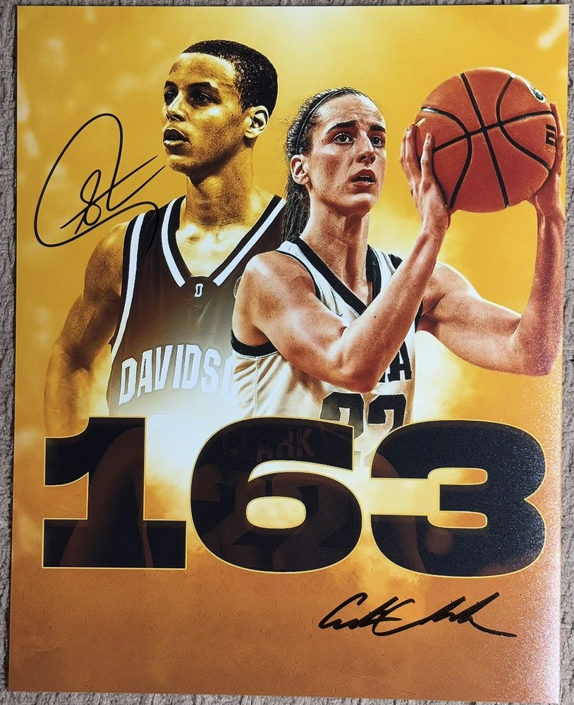Steph Curry and Caitlin Clark signed photograph. Comes with the COA shown in photos. Great condition. I got it online from a seller with great reviews. Celebrating her 163rd 3 pointer, passing Steph Curry for most 3s made by any devision 1 College athlete in a single season Selling item as is, I don’t accept returns Let me know if you have any questions! :)
