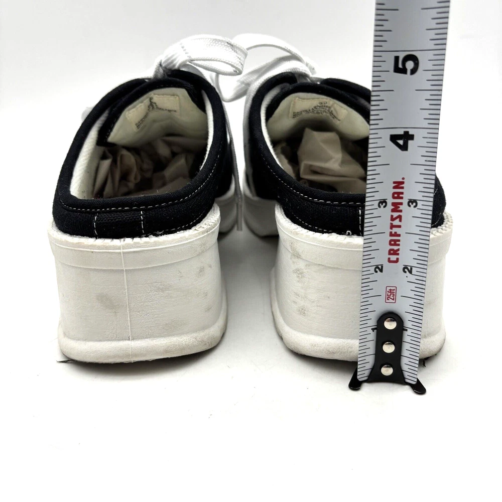 Vintage 90s Y2K No Boundaries Platform Sneakers Model: MICHELE Black Canvas Upper Lace Up Slip On Open Back Round Toe Block Heel Metallic Silver Embroidered Beaded Dragonflies on Sides Shoe Width: Standard 2.5" heel 1" platform Women's Size US 8.5 UK 6.5 EU 39 Great vintage pre owned condition. Gently owned. Mild wear on soles - shown in photos. Otherwise, no rips, tears, stains, holes or other notable flaws. Clean and from a smoke free home.