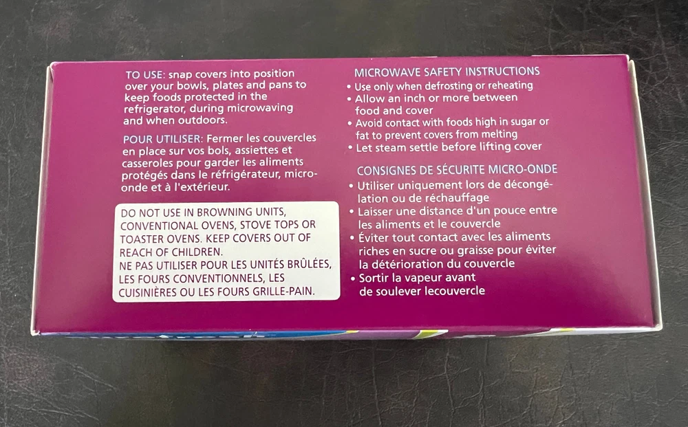 1 Box SureFresh Cover-Ups Elastic Plastic Bowl, Plate & Pan Covers The Box Contains 17 Covers: 4 Small (8.5") 7 Medium (14") 6 Large (16.5") You will receive 1 box, as shown in picture. Snap covers into position over your bowls, plates, and pans to keep foods protected in the refrigerator, during microwaving and when outdoors.