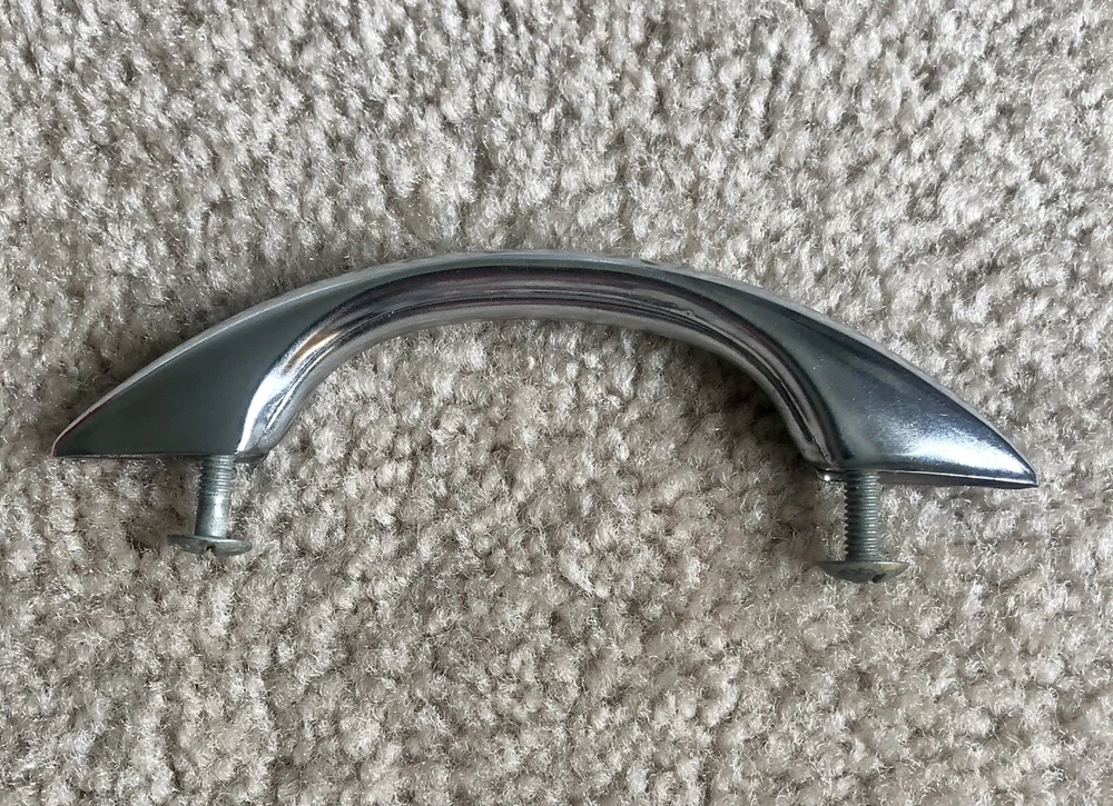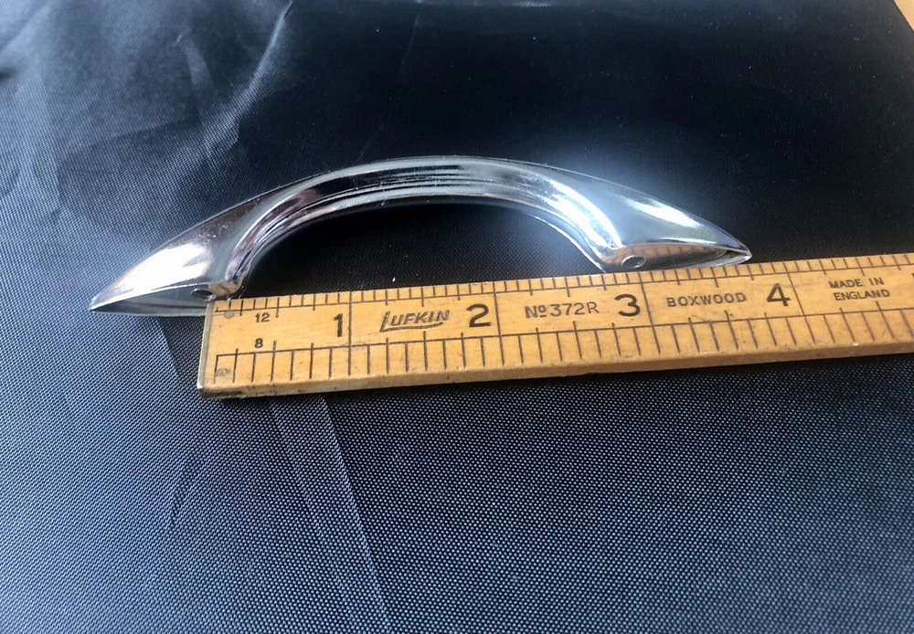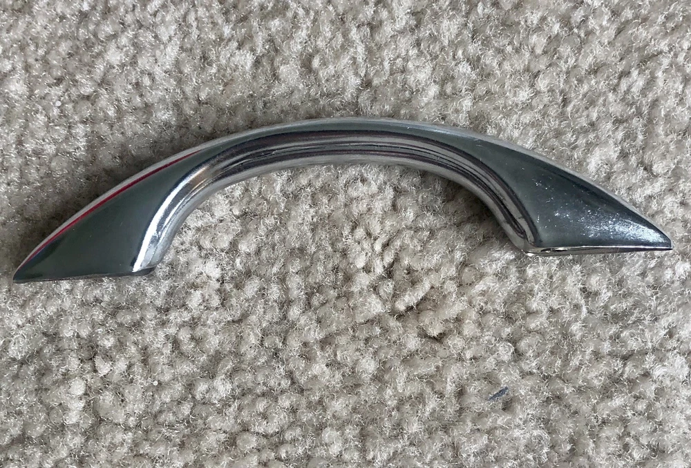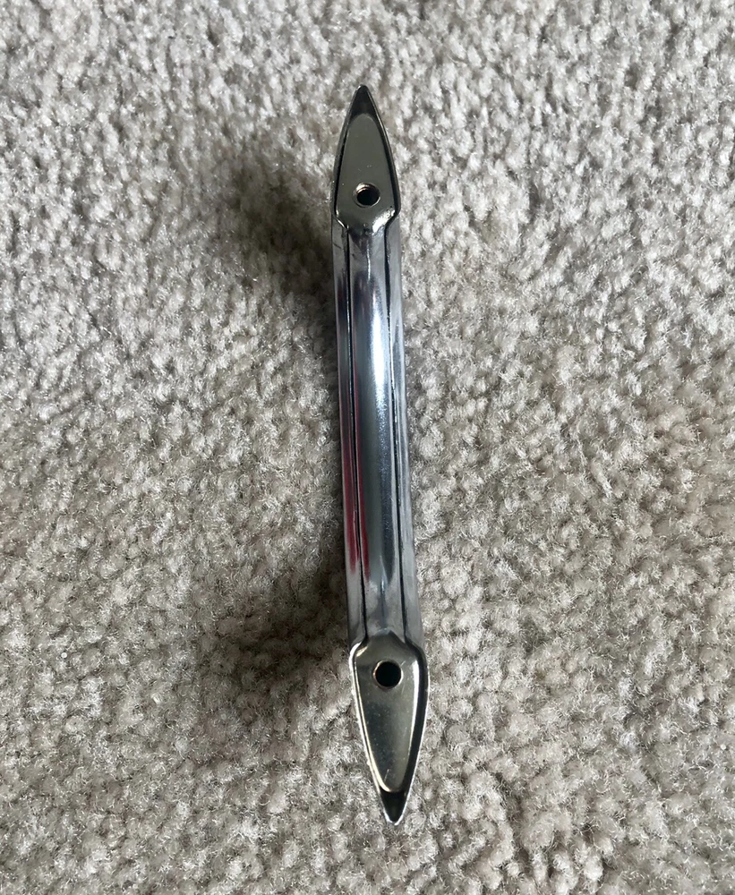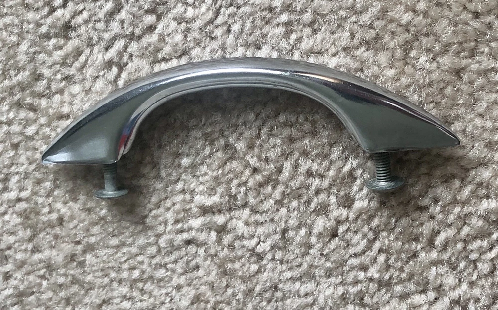 You probably won't ever find the actual Gilligan's Island radio, as they are quite rare, but here's a handle you can buy that's like the one added to the radio for the show. Maybe you have a similar style radio and this can be added to make a conversation piece. Or perhaps you have a homebrew radio or amp and you can add a handle / handles. Buy it now is for 1 handle. Art Deco chrome drawer handle cabinet pull. Each is used and in comparable excellent condition. Up to 8 available. Each comes with 2 mounting screws. See photos for dimensions.