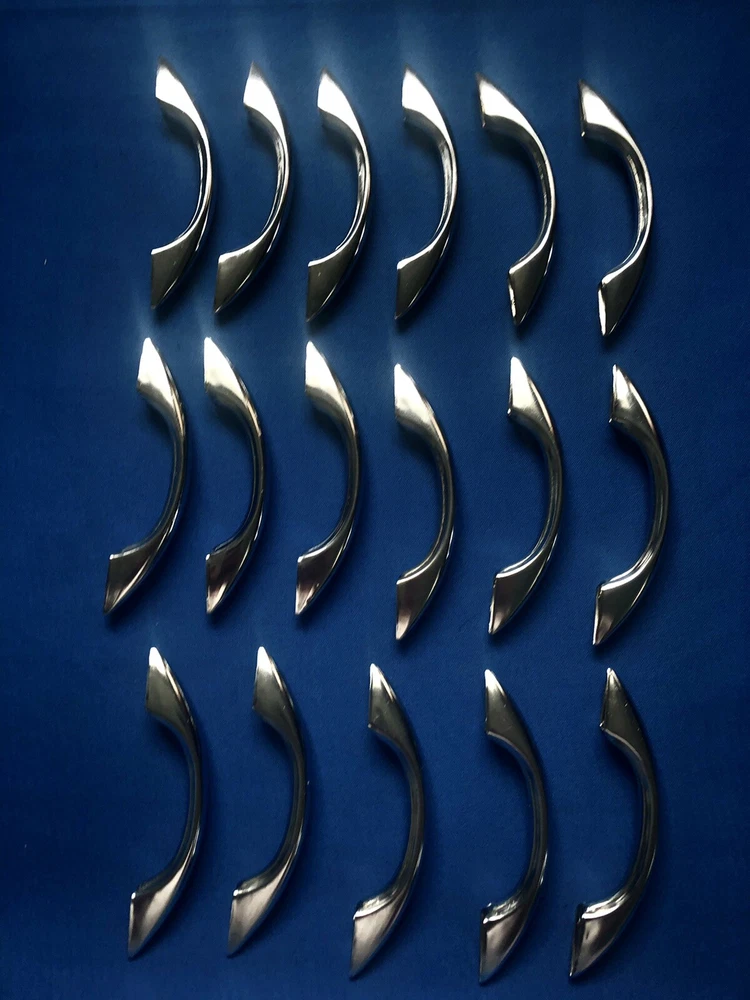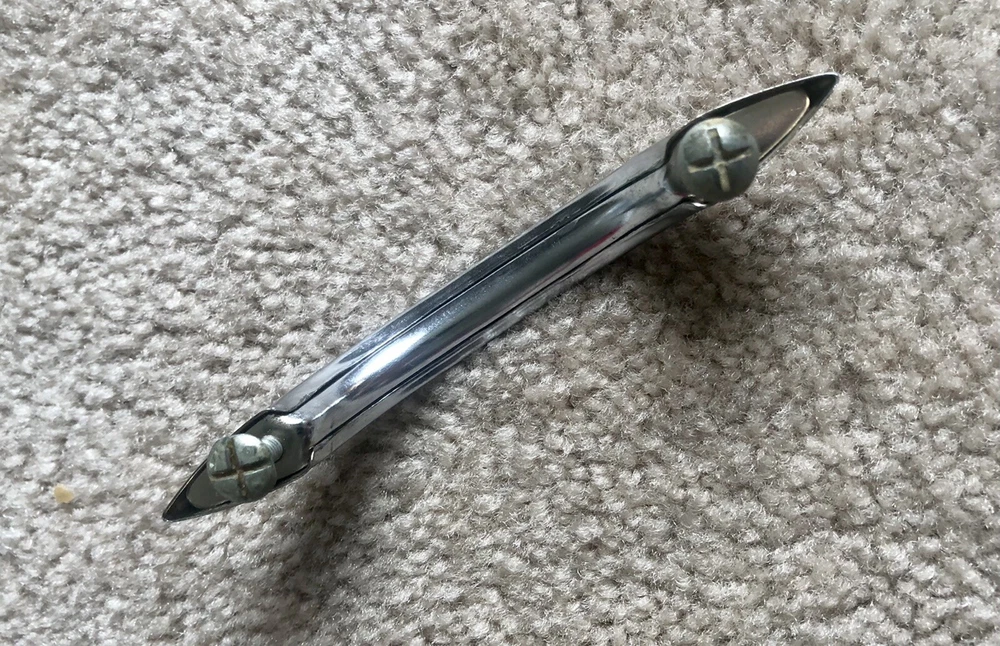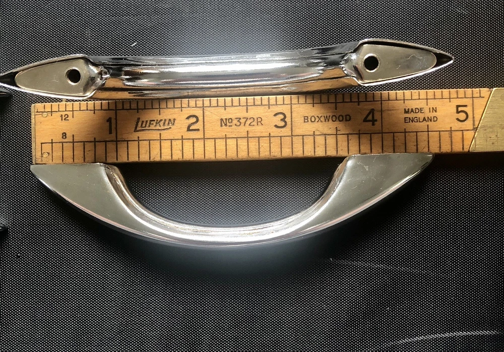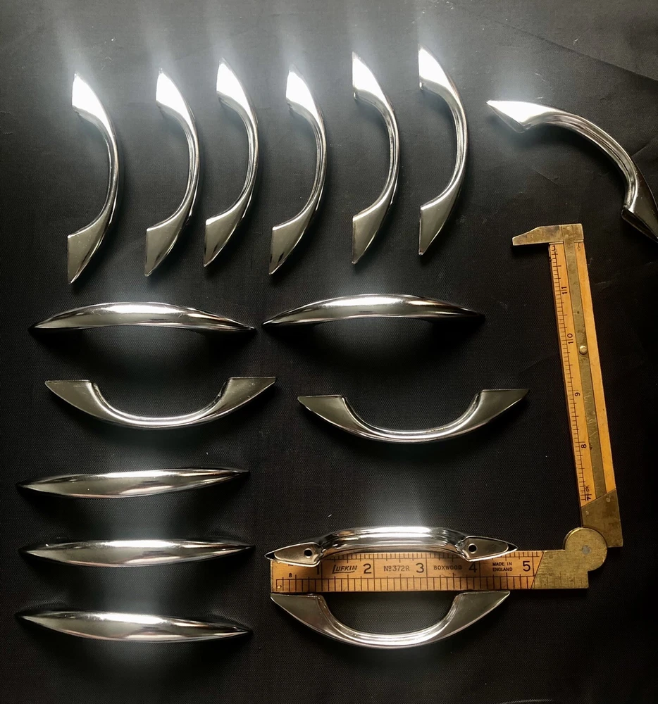 You probably won't ever find the actual Gilligan's Island radio, as they are quite rare, but here's a handle you can buy that's like the one added to the radio for the show. Maybe you have a similar style radio and this can be added to make a conversation piece. Or perhaps you have a homebrew radio or amp and you can add a handle / handles. Buy it now is for 1 handle. Art Deco chrome drawer handle cabinet pull. Each is used and in comparable excellent condition. Up to 8 available. Each comes with 2 mounting screws. See photos for dimensions.