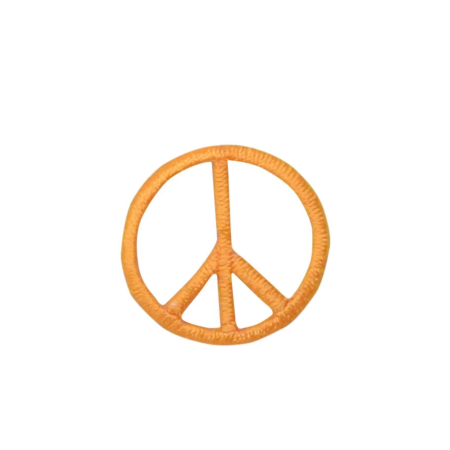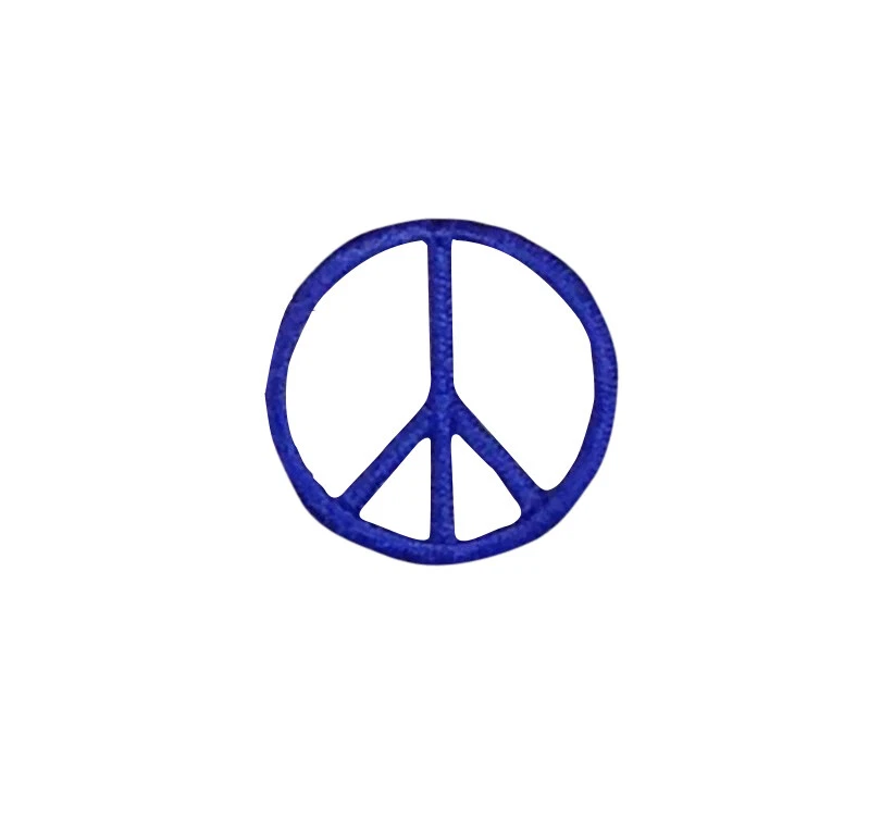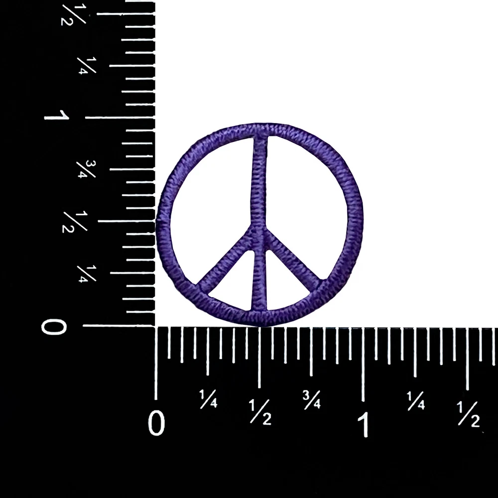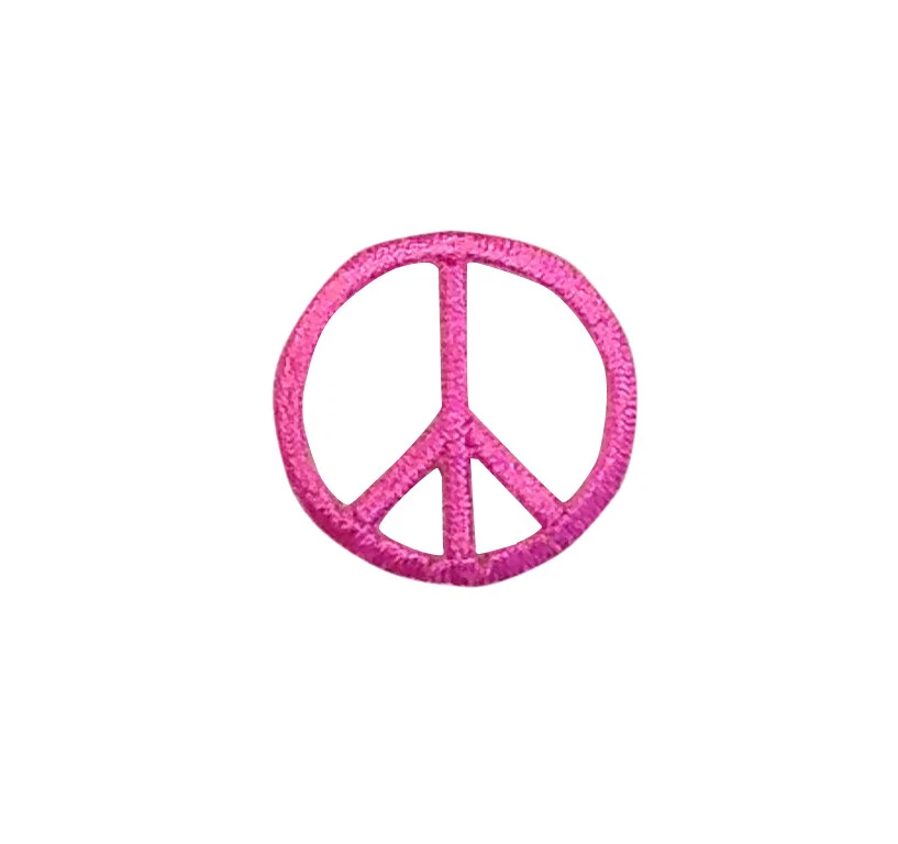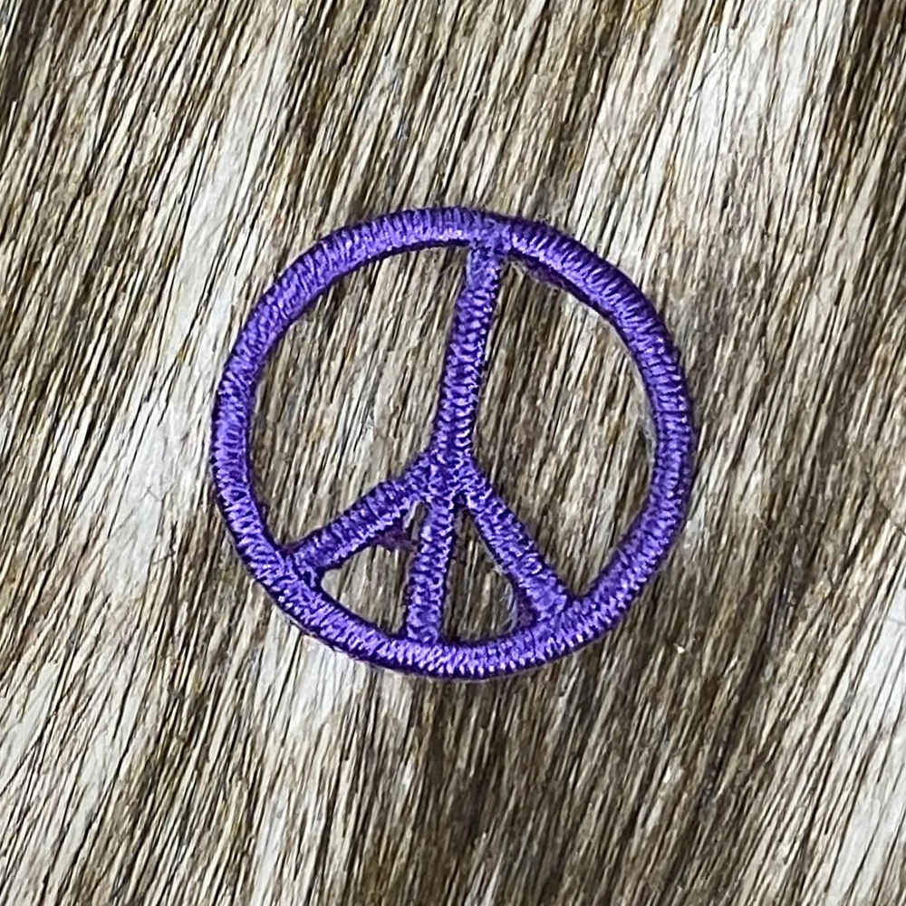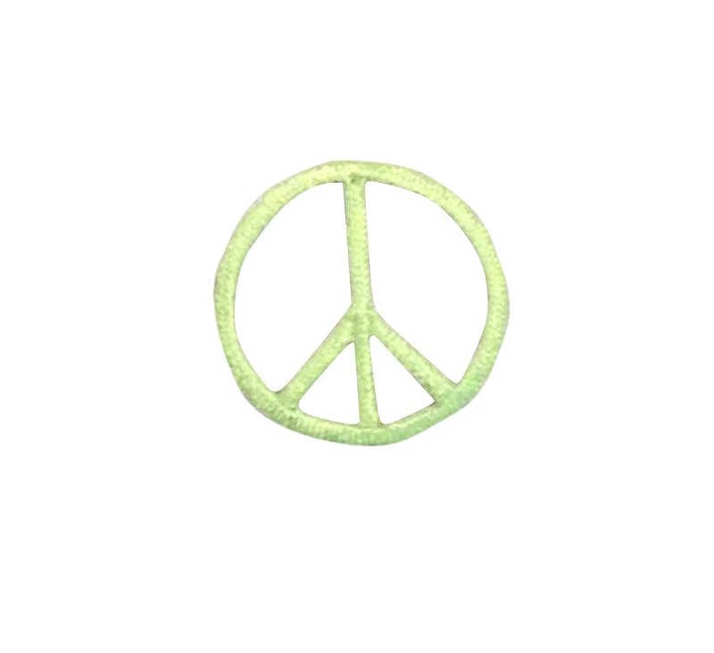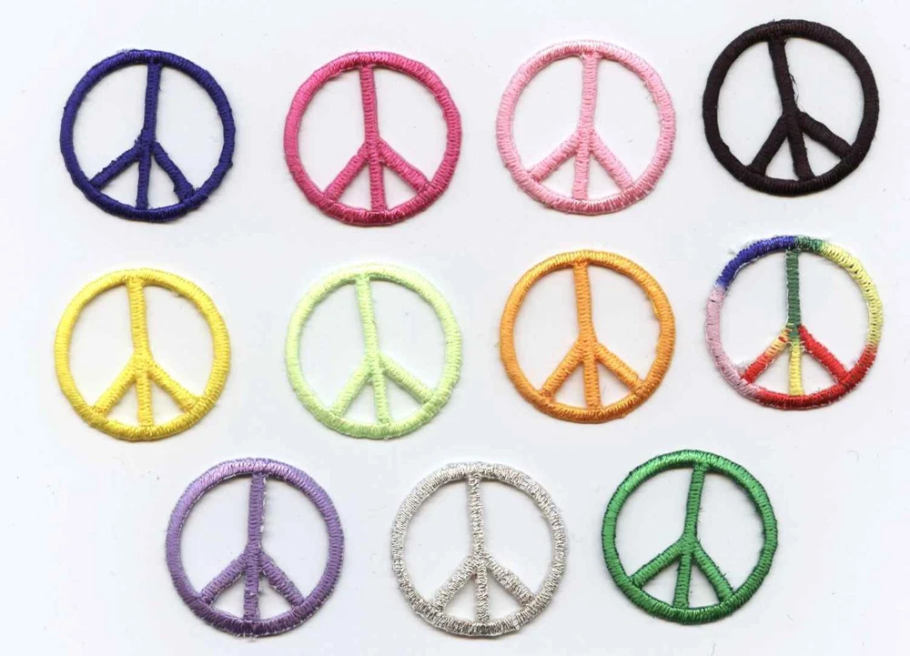 Embroidered iron on script monogram style peace signs. Your choice of color: Silver, Black, Green, Yellow, Orange, Light Purple, Pink, Multicolor, Hot Pink, Lime, White, Red, Navy Blue, Royal Blue, Purple, and Gold These peace signs are all approx. 1" (2.54cm)