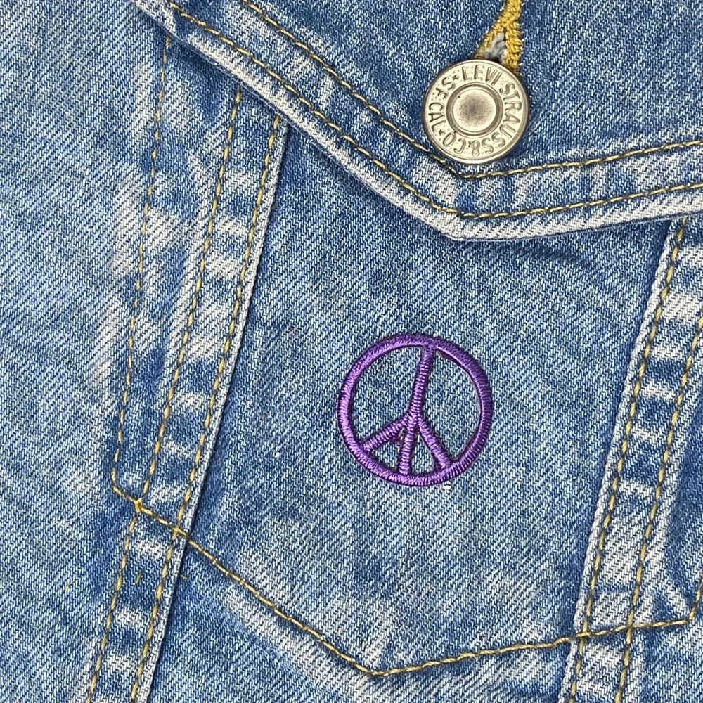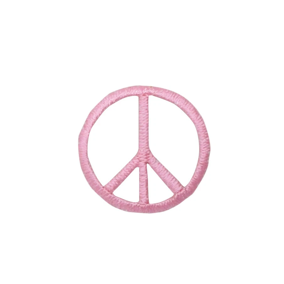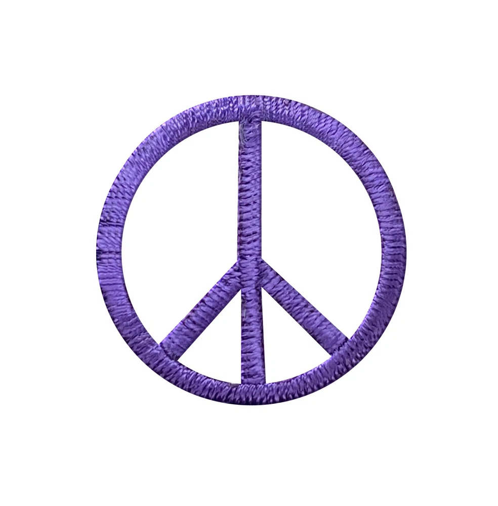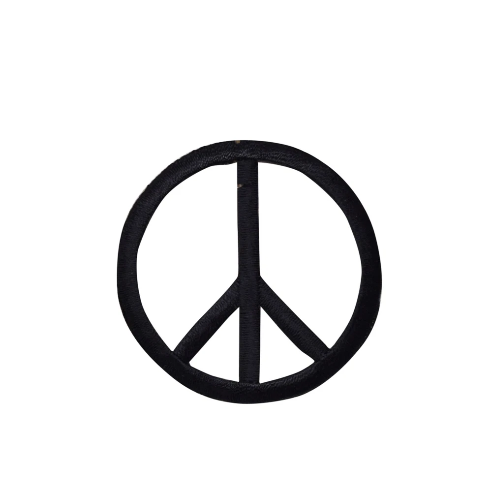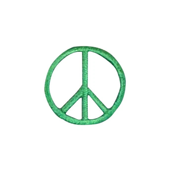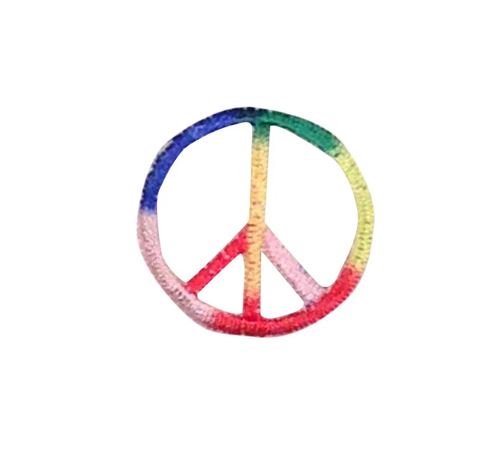 Embroidered iron on script monogram style peace signs. Your choice of color: Silver, Black, Green, Yellow, Orange, Light Purple, Pink, Multicolor, Hot Pink, Lime, White, Red, Navy Blue, Royal Blue, Purple, and Gold These peace signs are all approx. 1" (2.54cm)
