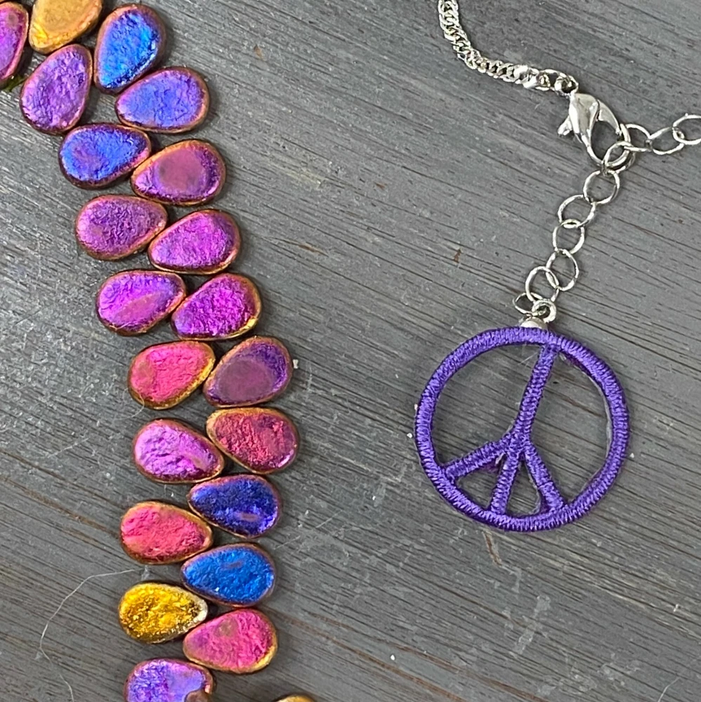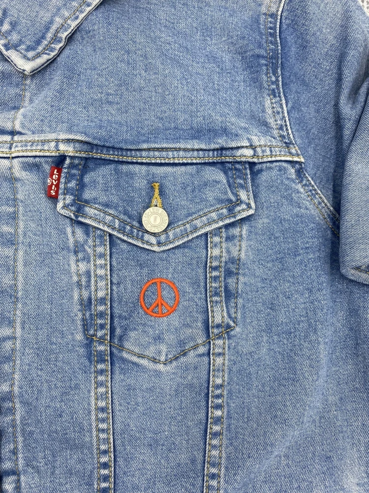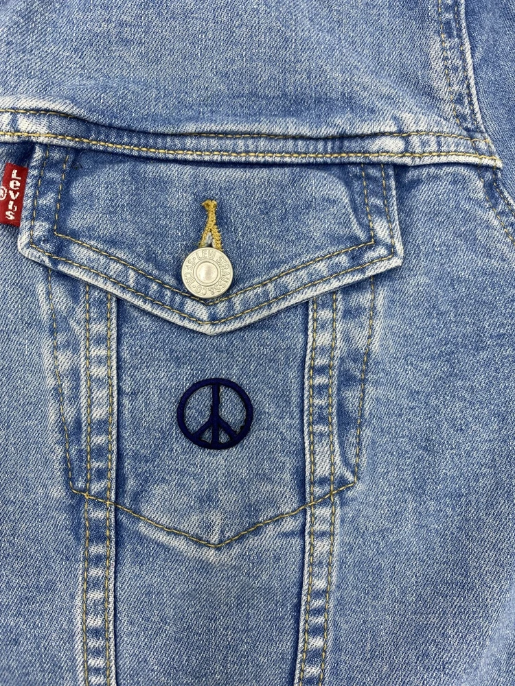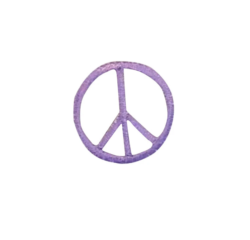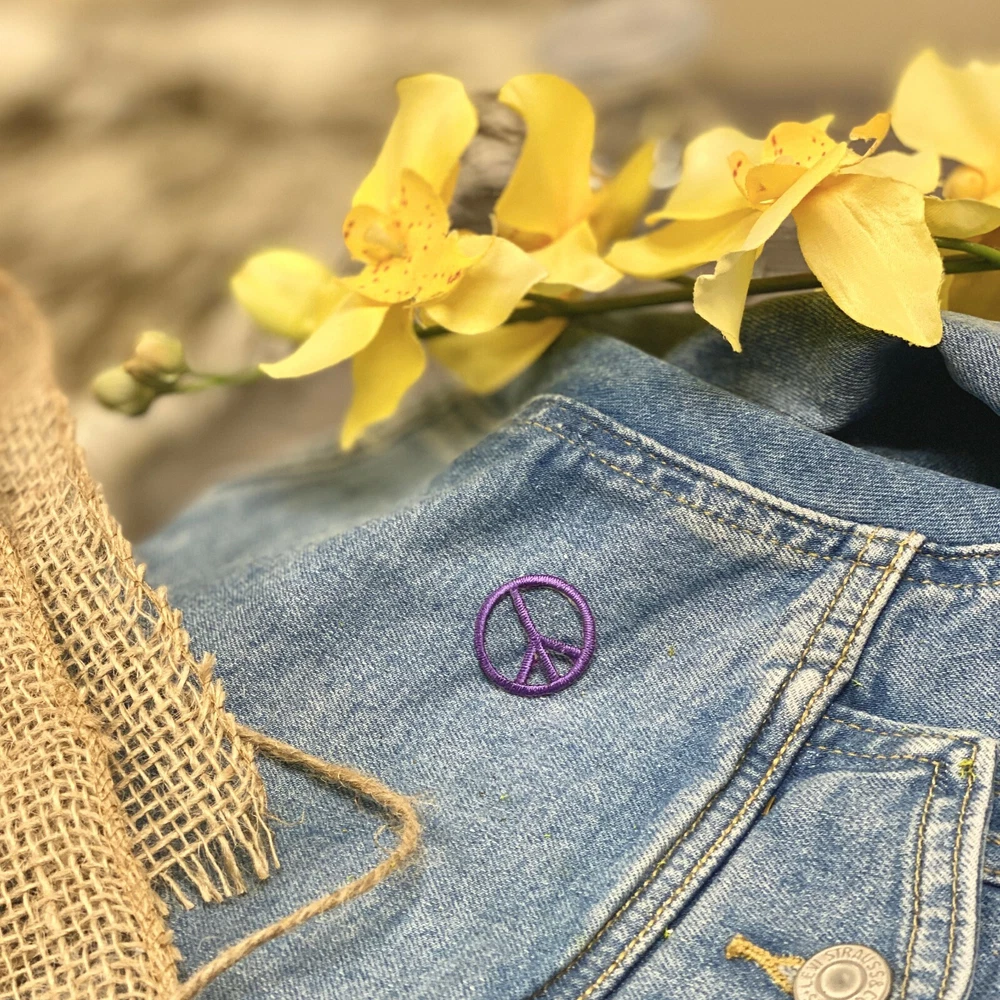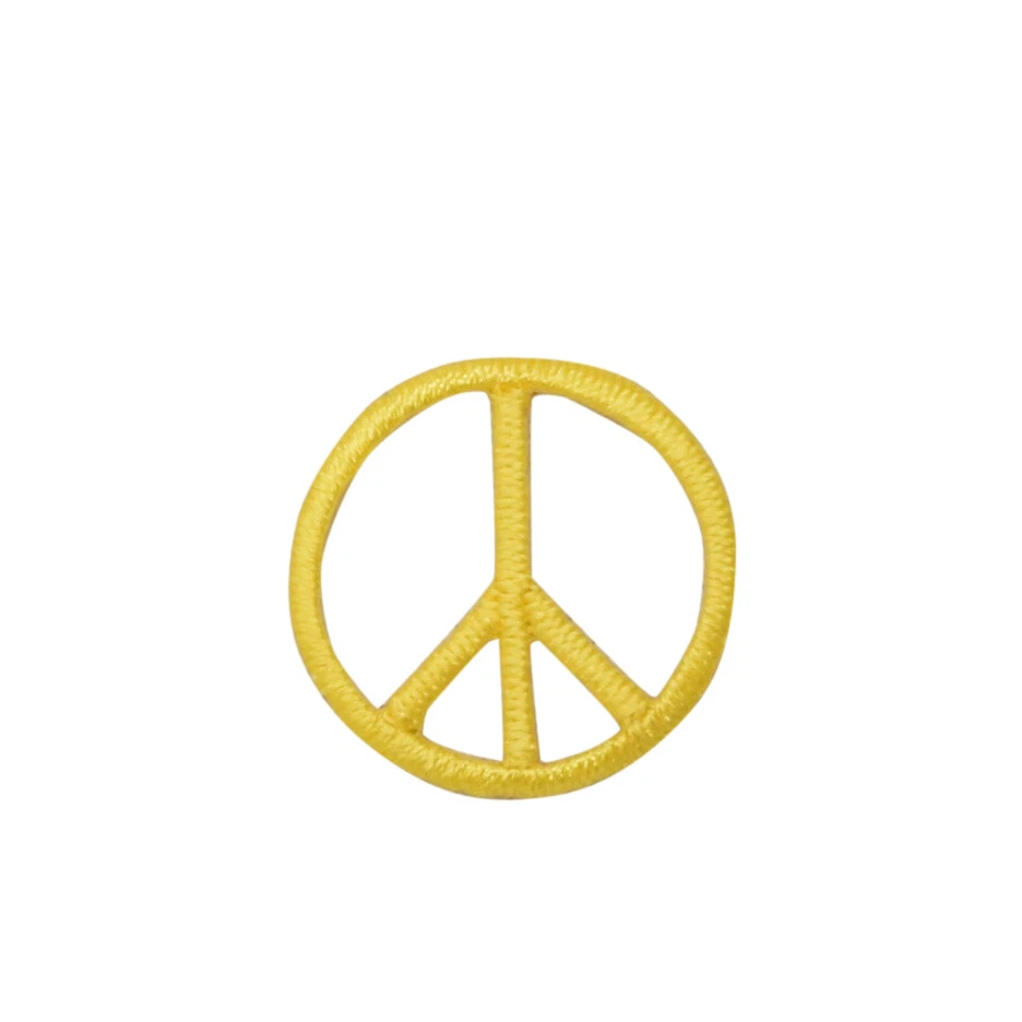 Embroidered iron on script monogram style peace signs. Your choice of color: Silver, Black, Green, Yellow, Orange, Light Purple, Pink, Multicolor, Hot Pink, Lime, White, Red, Navy Blue, Royal Blue, Purple, and Gold These peace signs are all approx. 1" (2.54cm)