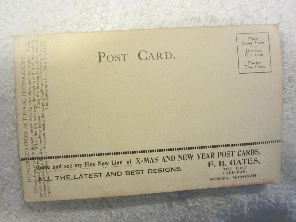 Country/Region of Manufacture:United StatesCity:San FranciscoType:Printed (Lithograph)Subject:fireFeatures:Undivided BackSize:Standard (5.5 x 3.5 in)Unit of Sale:Single UnitRegion:CaliforniaContinent:North AmericaCountry:United StatesOriginal/Licensed Reprint:Licensed ReprintTheme:Cities & TownsEra:Undivided Back (1901-1907)Seller Notes:“Has some scrapes and wear. See pics for condition.”Time Period Manufactured:1900-1919Number of Items in Set:1Postage Condition:Unposted