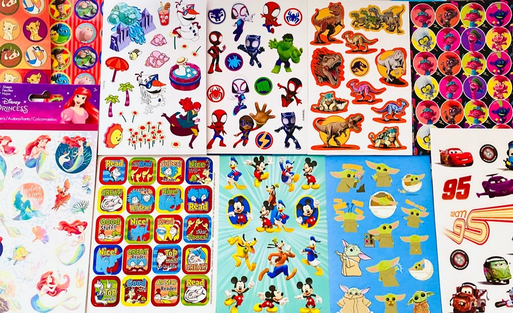 Happy Mixed Sticker Lot | The Ultimate Kit | Qty. 10 Sticker Sheets Fun Assortment of Glossy, Glitter, Metallic, Foil, Laser, Puffy, Scrapbook, Cartoons, Bubble, Pop Up Stickers For Everyone! I have included a large variety of pictures of the assortment available. The pictures give you an idea of what you will be receiving. Please Note: You will not receive everything pictured. You can choose any themes you like. Please contact me with any special requests. This HUGE Variety of fun designs stickers can be used in parties, classroom, school and home, good for reward for students, potty training, adding inside a birthday card, game activities, entertaining toddlers, etc. Perfect Gifts for Kids & all Occasions: Can be given as a gift for kids, girls, boys, toddlers, teens, students, friends, and classmates, they will love it!