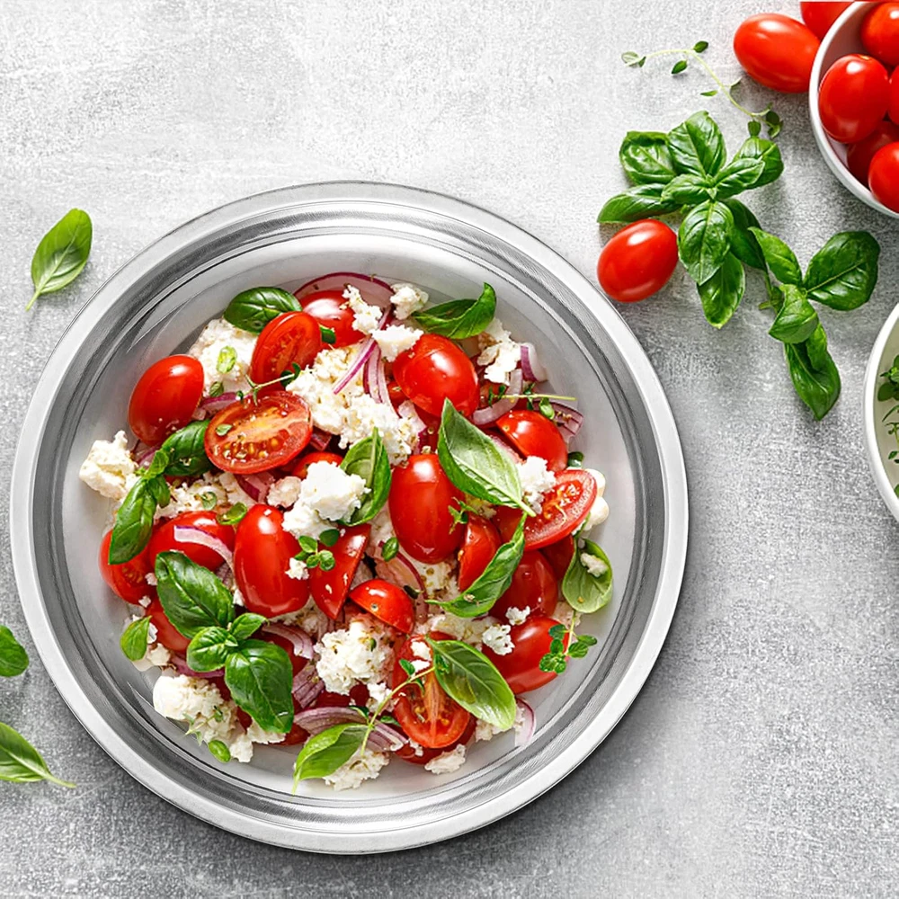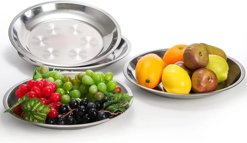 Package includes 10 pack stainless steel dinner plates, 10" in diameter, and 1.7" in height with stable base, and make stably stacking up to save space in kitchen cabinet or drawer. The camping plate is made of stainless steel, without harmful substance to ensure the health of kids, toddler and adults. Light and easy to handle as compare to ceramic and glass plates. Easy to transport and sturdy enough without worry of breaking or deformation if you drop it by accident. Dessert salad plates is great for indoor, outdoor, dinner, camping, barbecues, picnics etc. Our metal dish plate has a edge to make it easier for the child to keep the food on the plate, large capacity can hold a lot of food, work well in serving pasta, sandwich, salad, pancakes, fruits, dessert, snacks, etc. Metal surface is smooth without rough spot easy to clean, dishwasher safe. Smooth round edges without rough spot won't hurt you soft skin. Perfect for a nice housewarming gift or holiday present. Product Description 10 Pack Stainless Steel Dinner Plates, 10" Round Kitchen Metal Dish Plates, Rust-Proof Camping Serving Plates for BBQ, Snack, Salad, Appetizer, Fruit Our metal dish plate has a edge to make it easier for the child to keep the food on the plate, large capacity can hold a lot of food, work well in serving pasta, sandwich, salad, pancakes, fruits, dessert, snacks, etc. Product name: Stainless Steel Dinner Plates Quantity: 10 Material: Stainless Steel Size: 10" D x 1.7" H 10 Pack Stainless Steel Dinner Plates Package includes 10 pack stainless steel dinner plates, 10" in diameter, and 1.7" in height with stable base, and make stably stacking up to save space in kitchen cabinet or drawer. The camping plate is made of stainless steel, without harmful substance to ensure the health of kids, toddler and adults. Light and easy to handle as compare to ceramic and glass plates. Easy to transport and sturdy enough without worry of breaking or deformation if you drop it by accident. Dessert salad plates is great for indoor, outdoor, dinner, camping, barbecues, picnics etc. These larger kids dinner plates not only design for toddlers, but also for adult use in any occasions like buffet, birthday party, indoor or outdoor, camping, gatherings, and picnics Metal surface is smooth without rough spot easy to clean, dishwasher safe. Smooth round edges without rough spot won't hurt you soft skin Lightweight and stackable, which are simple and convenient to put or store anywhere you want with saving space.