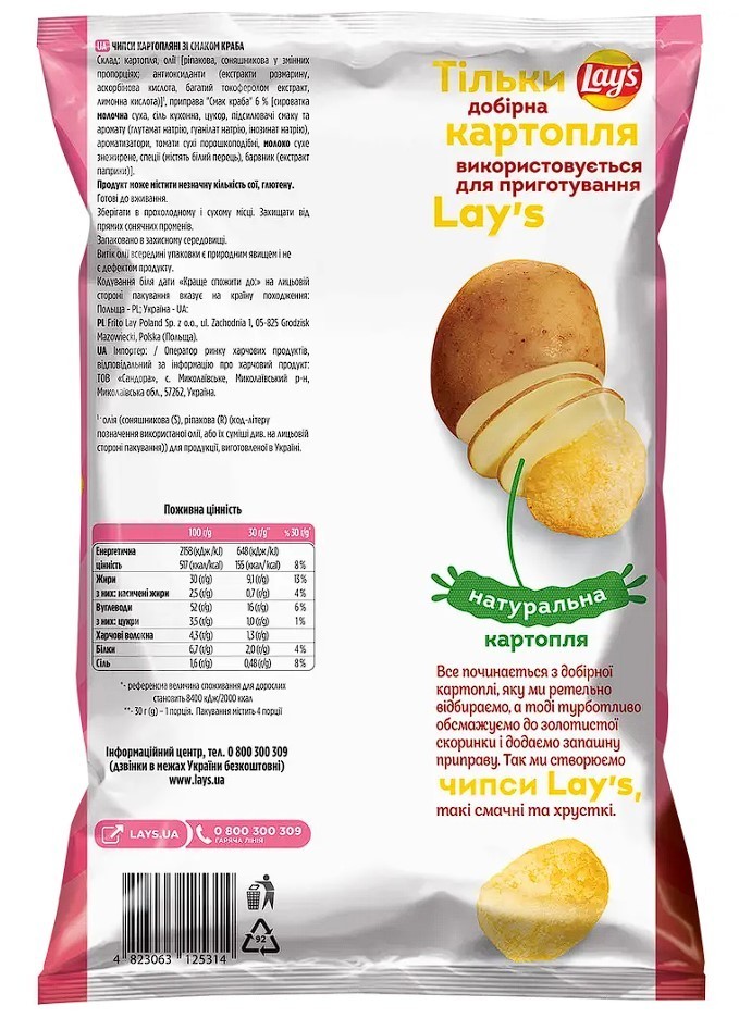 Our products 14 pcs Lays Ribbed chips with sour cream and onion flavor. Total 1330 g/ 47 oz 14 pcs Lay's Lobster Flavored Chips. Total 1330 g/ 47 oz Ideal for sauces 10 pcs Lay's chips with paprika flavor. Total 1200 g / 42.3oz Ideal for beer LAYS CRAB flavored potato chips 10 packs 120 g / 42.3oz Free worldwide shipping We now offer Worldwide Shipping to all permitted locations Ukrainian Lay’s Crab Flavored Potato Chips – 10 Packs (120g Each) ✔ Original Ukrainian Lay’s potato chips ✔ Popular crab flavor ✔ 10 packs x 120g (large family or party pack) ✔ Imported Ukrainian snacks ✔ Random gift included Enjoy the unique taste of Ukrainian Lay’s Crab flavored potato chips , a popular savory snack loved for its bold seafood-inspired flavor and crispy texture. These chips are produced in Ukraine and offer a taste that differs from Lay’s flavors commonly found in other countries. Each pack contains 120g of crunchy potato chips seasoned with a rich crab flavor, making them perfect for sharing, parties, movie nights, or everyday snacking. This listing includes 10 full-size packs , plus a random complimentary gift as a bonus. Product Details: Brand: Lay’s Flavor: Crab Type: Potato chips / savory snack Origin: Made in Ukraine Pack size: 120g per pack Quantity: 10 packs Bonus: Random gift included Why You’ll Love Them: Authentic Ukrainian snacks , hard to find internationally Bold and savory crab flavor Crispy, fresh, and satisfying Great for sharing or stocking up Perfect gift for fans of international snacks Ideal For: Snack lovers and food explorers Fans of international and imported snacks Parties, gatherings, and casual snacking Trying unique Lay’s flavors not available locally 📦 Carefully packed for international shipping. 🦀 Taste a popular Ukrainian Lay’s flavor today! Our products 10 pcs Lux wavy chips with chanterelle flavor. Total 1250 grams. Potato chips 12 pcs LAYS potato chips. 5 different flavors 1340g. Crab, lobster, grilled ribs Mivina instant vermicelli noodle Chicken flavored. 6-25 pcs. Original taste