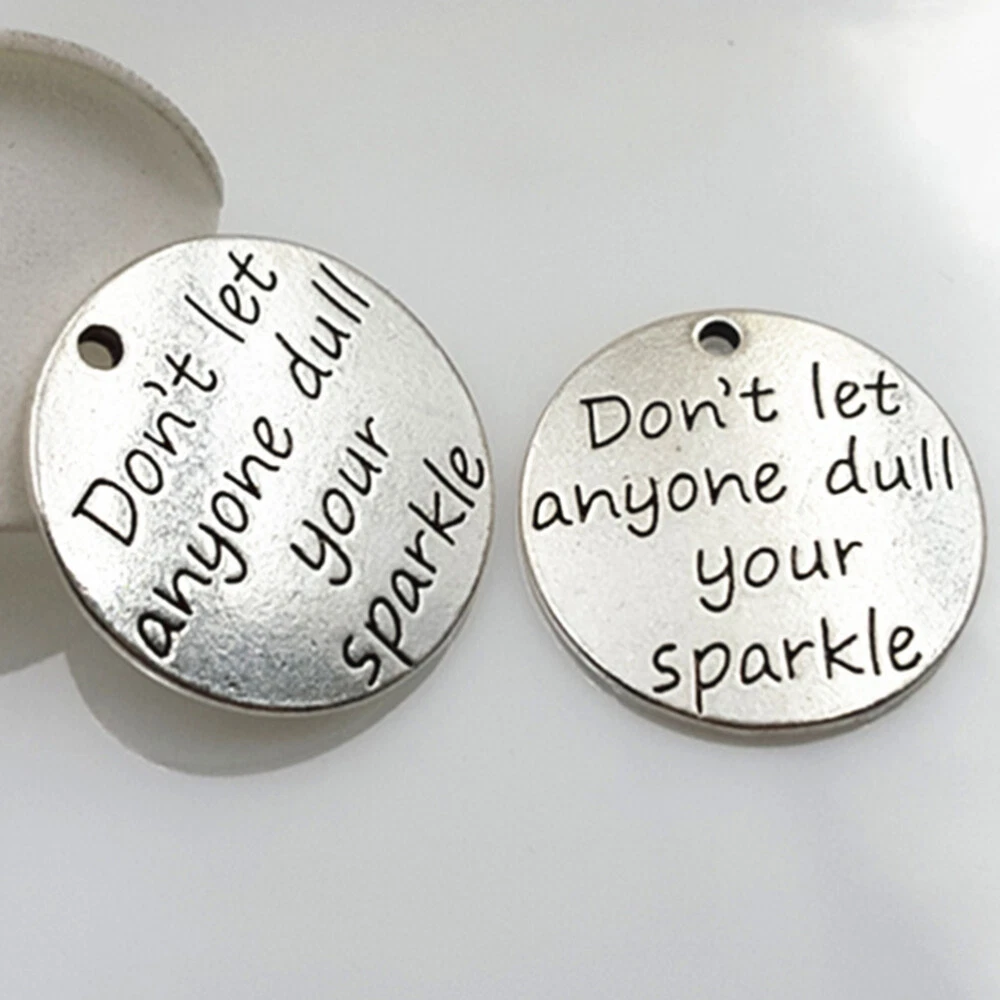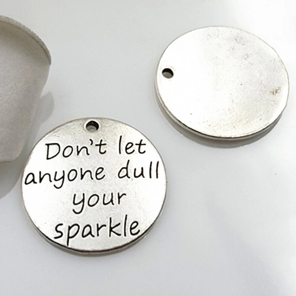 Related Hot Sale Outdoor outside Mat Natural Decorative Floor Pad Home Carpet US $29.29 36 Pairs Eyeliner Stickers Glitter Assorted Color Double Eyelid Miss US $24.99 2 Pcs Walker Accessories Light Mount for Cane Crutches US $17.78 20 pcs mouse cat toy Cat Bells Toys Cat Wand Toy Cat Teaser Toys Kitten US $23.99 Stainless Steel Shoehorn Seniors Athletic Shoes Men's Sneakers US $48.35 500pcs tags stickers Key Labels Retail Tags Diy Tags Tags Stickers Blank Gift US $19.45 | Baby | | Books & Magazines | | Business & Industrial | | Cameras & Photo | | Clothing, Shoes & Accessories | | Collectibles | | Computers/Tablets & Networking | | Crafts | | Home & Garden | | Jewelry & Watches | | Cell Phones & Accessories | | Consumer Electronics | | Sporting Goods | | Toys & Hobbies | | Video Games & Consoles | | Health & Beauty | Product Description Collecting listings has surprises Description These jewelry finding or supplies can be made into earrings, necklaces, or bracelets. They are unique jewelry accessories for DIY fashion costume jewelry making, wedding jewelry making, or hair jewelry making. They can also be used as jewelry charms for women, men, or girls. This item is a set of 10 pieces alloy pendants. Features - Add the pendant to your necklace, which will make you more eye-catching. - Perfect DIY accessories for homemade jewelry, make you enjoy the fun of DIY. - You can design the gift for your friend , create the unique gift. - The pendent is stamped with Don't Let Anyone Dull Your Sparkle. This necklace makes a lovely encouragement gift. - Made of alloy, . - Color: As shown. - Material: Alloy. - Size: 23mm x 0.9inch in diameter. Package includes 1 x set of 10Pcs Alloy Silver Don't Let Anyone Dull Your Sparkle Round DIY Antique Message Charms Pendant for Making Bracelet and Necklace Contact US 1.If you have some inquires or problems, Please feel free to contact us. 2.We will reply your email within 1 business day (except weekend). 3.When delivery is delayed or items are damaged during delivery, please email us first before you leave feedback. Thank you. People Who Viewed This Item Also Viewed 24 pcs blinds cord tassel Window Blind Cord Tassel Blind Cord Tassels Knobs US $10.36 50 Pcs Red Heart Pendant Valentine Day Shape Charms Accessories DIY Crafts US $9.61 24 Pcs M Miss Birthstone Charms for Necklace Stainless Steel Retro Earrings US $6.79 Stone Necklace Holder Hollow Stone Holder Pendant Sturdy Metal Crystal Holder US $11.18 beaded choker for Women Trendy Beaded Choker Beaded for Women Stone US $7.4 Keepsakes Cremation Jewelry Sunflower Urn Necklace Ashes Ash Box Necklace US $5.99 Ceramic Neck Pendant Antique Necklace Collar Jewelry Boho Choker Leaf US $5.45 Scorpion Jewelry Pendant Handmade Necklace Chokers Gothic Vintage US $6.71 6pcs Ice Cream Cone Xmas Tree Ornaments Holiday Decor US $9.83 Charms Necklaces Collar Choker Handmade Bohemian Girls Beaded US $8.15 24pcs Alloy Pendant Charms jigsaw puzzle charm necklace charm Alloy Pendant US $8.79 Steampunk Pendant Necklace Steampunk Jewelry Gothic Necklace Gear Cog Necklace US $6.35 Bead Necklace Chokers for Women Mrs Street Photography US $7.36 Polyester Leaf Choker Chokers for Girls Collar Necklace Tree Leaves US $6.28 10 Pcs Kids Jelly Bracelet Silicone Bracelets Stretchy Wristband Child Elastic US $7.39 4 Pcs Dental Style Gift Label Pin Scarf Brooch Tooth Lapel Jewelry Nurse Clip US $8.39 Christmas Santa Ear Stud Holiday Santa Ear Stud Christmas Santa Enamel Earring US $7.74 link chain badge epaulette men chains Shoulder Rivet Tassel Epaulet Epaulet US $10.76 Gold Plated Bracelet Chain Link Bracelet Gold Men's Hip Hop Jewelry US $7.99 Bracelet Wristband braided Chinese Style Braided Bracelets US $6.14 Red Wine Ear Drops Women Wine Earrings Bride Drop Earrings Women Dangle Earrings US $7.75 2 Pcs cufflink dress shirts Women Sweater Guard woman cardigan sweater Sweater US $7.76 Crystal Dangle Earrings - Good Luck Animal Jewelry US $9.88 100 Pcs Stainless Steel Dangle Earrings Silver Stud Fashionable US $7.28 On Feb 11, 2025 at 02:56:48 PST, seller added the following information:
