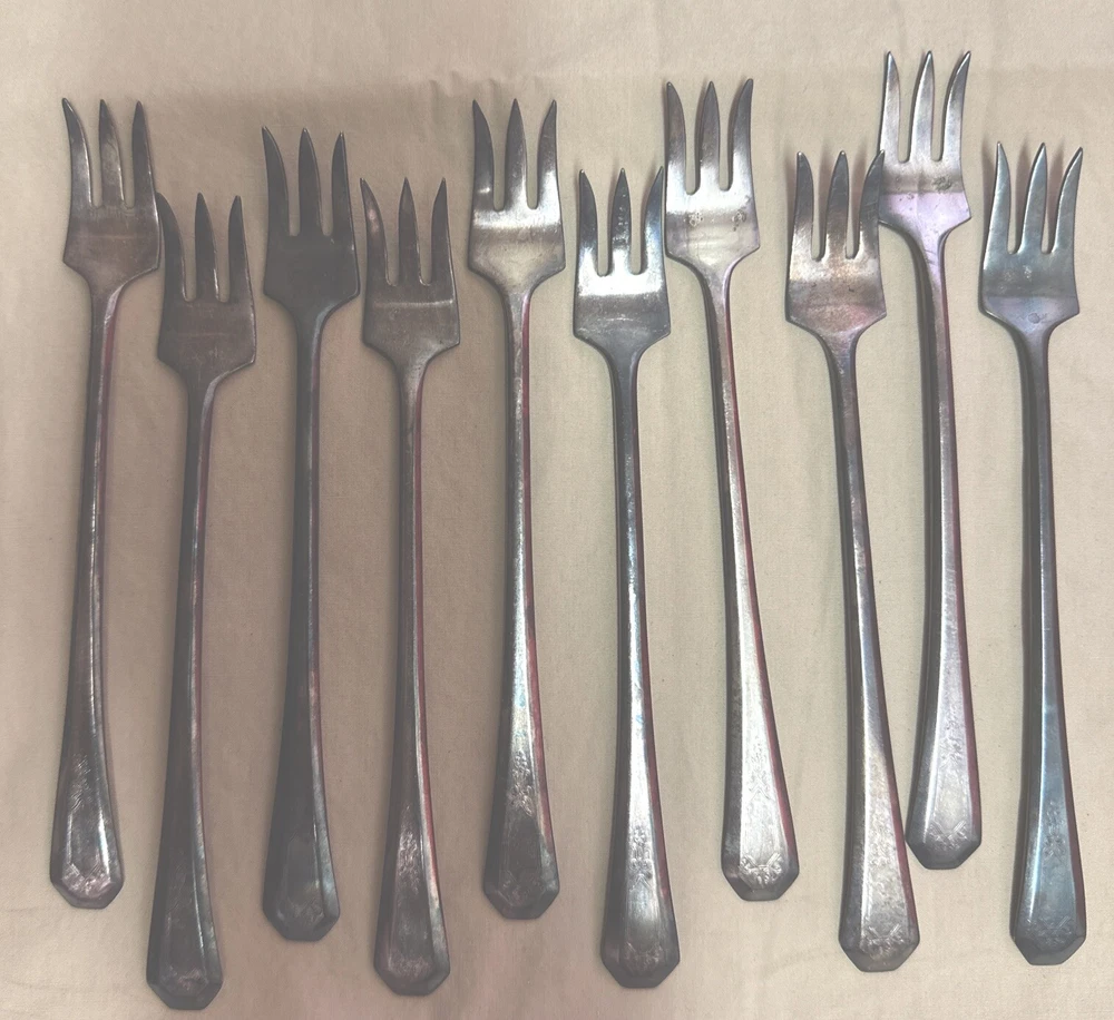 10 Vintage Wm A Rogers AA Silverplate Seafood Cocktail Forks Flatware 5-3/4”. Shipped with USPS Ground Advantage.