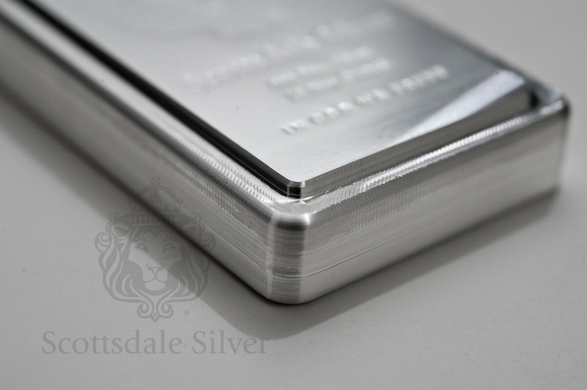 10 oz Scottsdale STACKER Silver Bar - Ten Troy oz .999 Silver Bullion Click to see supersized image Click to see supersized image Click to see supersized image Click to see supersized image Click to see supersized image Click to see supersized image Click to see supersized image Click to see supersized image Click to see supersized image SCOTTSDALE MINT presents: (1) 10oz Scottsdale STACKER ® Silver Bar 10 Troy Ounce Silver Bar .999 Pure Silver (Solid) Brand New The Stacker is back, and better than ever! Now featuring individual serial numbers. Precision machining at its finest. Nicknamed the Stacker ® , this 10 Troy Ounce bar's beveled, interlocking edges make it easy to create neat rows that will fit perfectly in your deposit box or safe. The logo and text is precision-stamped and the surface is highly reflective, giving the Stackers ® a clean uniform look. An anti-forgery swirl pattern with a light security Scottsdale Mint hallmark on the back adds to the good looks and exclusivity of this item. All good reason why this is this most popular silver bar in the World. Brand New .999 Pure Silver MADE IN USA. ISO 9001-2008 Certified and Qualified for IRA's. Dimensions: 73mm x 41mm x 11.4mm Each bar has its own unique serial number Private Auction - Allows buyers to remain anonymous to other eBay users Scottsdale Silver...the most distinguished name in bullion Free Regular Shipping and Free Insurance Upgraded Shipping available This auction will ship to the USA ONLY. Please contact us for options to ship internationally. Sorry, no APO/FPO/DPO. PayPal (accepts all major credit cards, PayPal balance, linked bank account, PayPal Credit (subject to pre-approval by PayPal) Due to the volitile nature of the Market: ALL SALES ARE FINAL & Payment must be made within 48 hours. Scottsdale Silver GUARANTEE: Whether you buy a Scottsdale Silver branded product or a different item from us, we 100% guarantee it to be authentic. When you buy directly from Scottsdale Silver & Gold you are purchasing from one of the most respected Metals Companies in the industry. Our facility is based in Arizona and we are one of the largest sellers of bullion on eBay. Check our Feedback and Bid with Confidence. Why take chances buying from private individuals or lesser known sellers? Email us through the Ebay system or Google "Scottsdale Silver" Track Page Views With Auctiva's FREE Counter