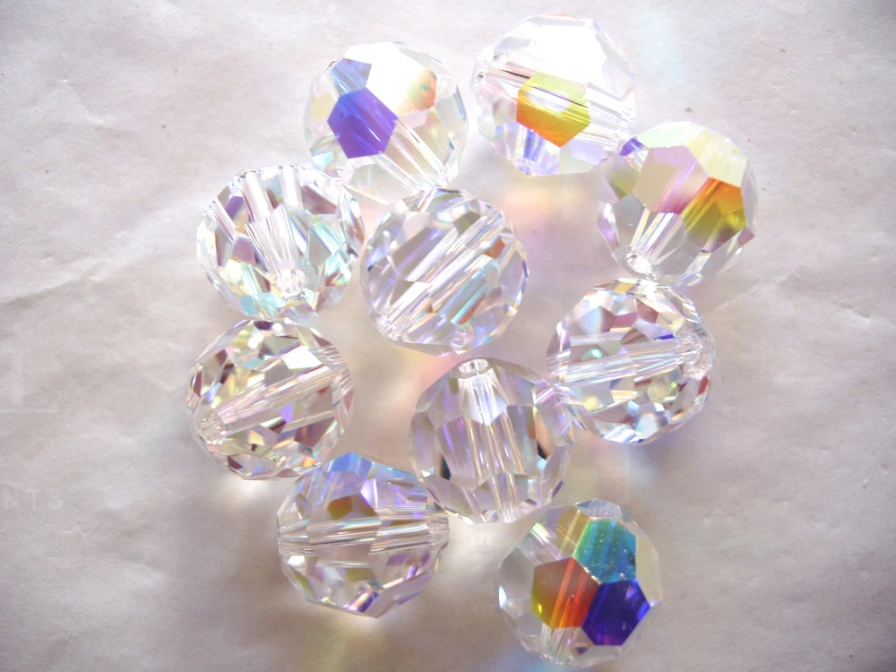 10 pieces of Genuine Swarovski Crystal 10mm Crystal AB loose beads. These beautiful, new 5000 style round crystals are perfect for birthstone and holiday jewelry. Bridal / Wedding Jewelry Visit my store for other Swarovski crystal colors, styles and sizes including birthstone mixes . I also carry this style in the 4mm, 6mm and 8mm sizes. FREE SHIPPING AND HANDLING ON THIS ITEM!!!