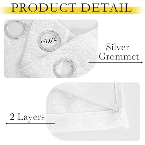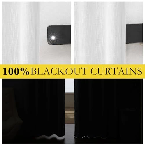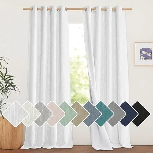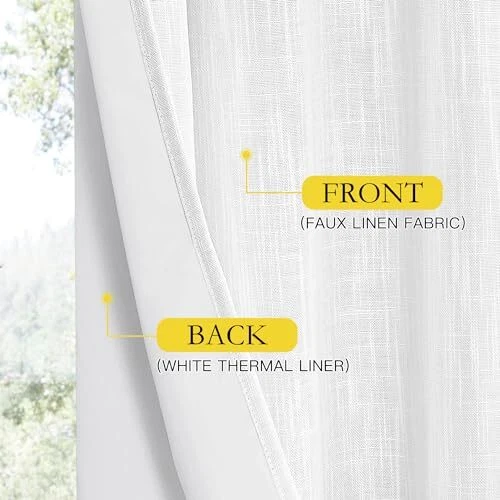 30 Days Return Policy Fast Delivery Trusted seller 100% Absolutely Blackout Linen Curtains 2 Panels Set with Thermal Insulated White Liner, White, 52 inches Wide, 90 inches Length Energy Saving Curtains for Living Room, Vertical Blinds Product Description Ready Made: 2 panels per package. Each classic linen blackout curtain measures 52" wide x 90" long (Total width is 104"). The unique design of silver grommet (1.6-inch inner diameter) creates farmhouse style for your house, which makes the curtains easy to install and slide. 100% Blackout: Sewn in White color liner diffuses daylight softly and adds additional privacy, making the drapes completely keep out the 100% sunlight and UV rayThe greatest benefit is to offer you a real dark environment, bringing you a good night's sleep during the day. Wide Compatibility: These durable elegant linen blend blackout curtains will decorate your windows and rooms with new sense. Perfect for bedroom, living room, kitchen, patio, room divider, functional and Morden. While still have top performance on energy saving and noise reducing, create airy, breathable, and rustic style. Flax Linen Blend: Linen blackout curtains bring both casual warmth and refined style to the room. The weave of the natural yarn-dyed fibers creates dimensional highs and lows for added depth. This curtain is an elegant option for any room in the home. Lab test shows these awesome curtain panels are environmental and vinyl free. Washing Tips: real linen texture is wrinkle-free and has a great vertical sense. But for the material is made from linen, to keep the original shape, you'd better dry-cleaning or wash the curtains with netural detergent. Shipping Returns Payment Shipping Shipping is FREE to all addresses other than APO/PO boxes in the lower 48 states. All our stock ships from US-based warehouses. Shipped via USPS or UPS (depending on location and package weight) Unless stated otherwise, all orders will ship within 24-72 hours of your payment being processed. Check our feedback to see the great reviews of FAST shipping we offer. Returns As our valued customer, we will do our best to make sure the product you receive arrives to you on time and as expected. If you are not satisfied with your purchase, please contact us within 30 days of receiving your order to process a return. Payment We currently accept payment via eBay managed payments only. Once payment is cleared, we will dispatch your shipment within 1-3 business days. Please refer to the "Shipping" tab for more information regarding shipping speed to your destination.