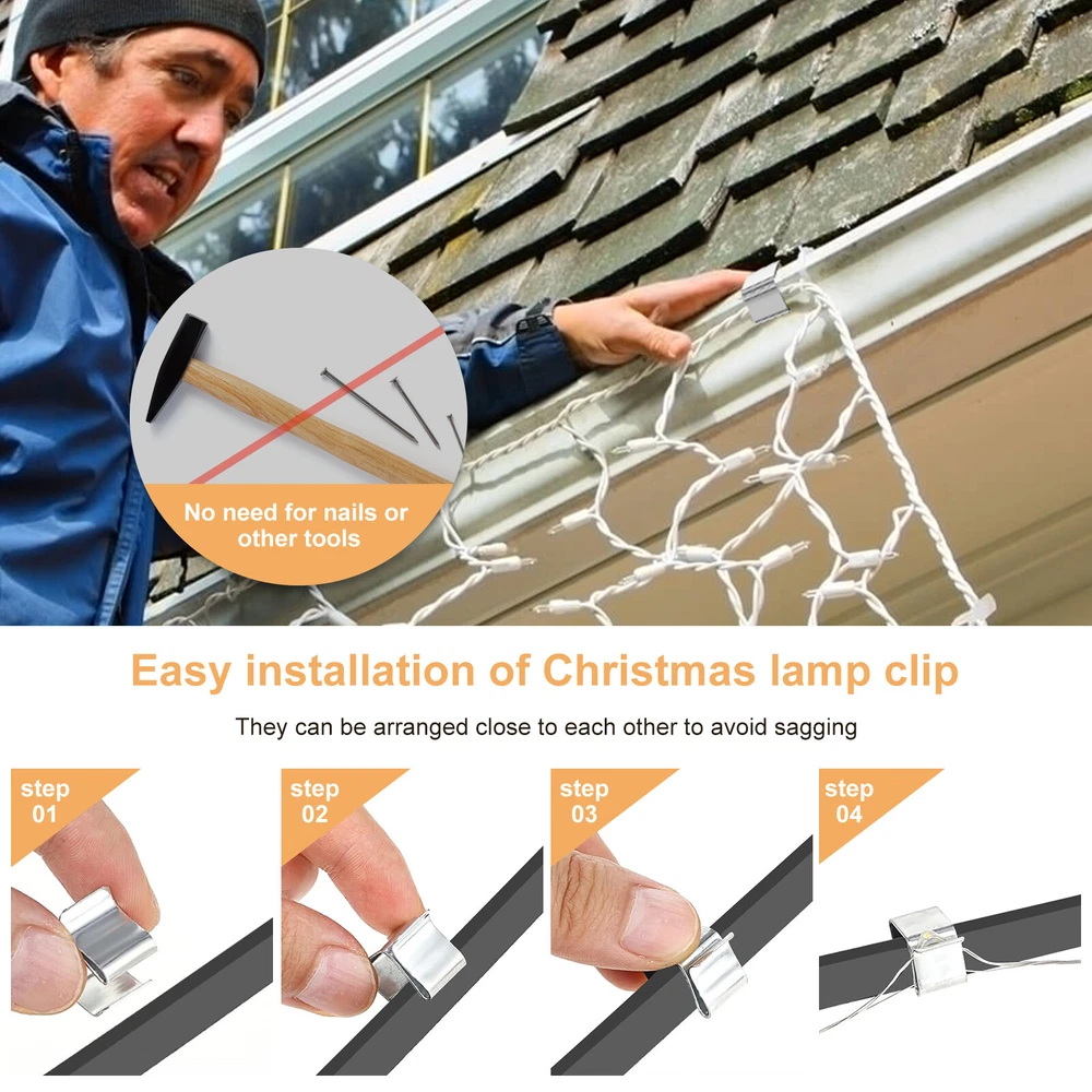 [---Welcome TO Our Store! Happy Shopping! Happy Life---] Highlight description: Easy to Install: Say goodbye to tedious installation with nails or glue. These gutter hooks are easy to attach directly without the need for any other tools, so you can easily organise a variety of items on your gutters. Unobtrusive Design: Our fairy light mounting troughs are mini-sized, making them unobtrusive and perfectly suited to your existing decor. They won't detract from the beauty of your home, day or night. Enough Quantity: You'll receive 50 S-shaped clip hooks, enough quantity so that you can neatly hang Christmas fairy lights or other Christmas lights to give your whole house a Christmas and fairytale-like atmosphere. Outdoor Light Clips: These fairy light clips are made of galvanised manganese steel. Unlike plastic texture, they break easily. Our texture is stronger, more reliable and stable, can withstand heavy loads, weather and frost resistant, not easy to rust, long service life, small size and light weight, save and storage space. Easy to Use: You can use these drain hooks directly without tools. Christmas light clips are easy to install, no glue, nails or other tools required; (USE TIP): the hooks of the hanging clips can be attached approximately every 18 to 24 inches. When used to hang rope lights, they can be arranged close to each other to avoid sagging and give your fairy lights a better decorative effect Versatile: These mini drainage hooks are often used for icicle lights, LED fairy lights and other indoor and outdoor decorative lights. They can be placed on Christmas trees, gutters, yards, eaves, etc. to add colour to your fairy lights and decorate your party; it can also be used to hang some plants . Detailed description: Description: It can provide a reliable clamping force to ensure that the object to be clamped will not loosen or move during use. Key Feature: It usually has a simple structure and mode of operation, and can be quickly held and loosened. Specification: Texture: Stainless Steel Size: About 17 × 14mm Note: 1. There may be slight differences between the picture and the actual color of the commodity. We will try our best to show you the exact color. 2. Please allow slight dimension difference due to manual measurement. Parts List: Style 1: 50 × Hook Style 2: 100 × Hook We accept Payoneer/Mastercard/VISA/Google Pay/American Express etc. Immediate payment is needed, so that we can finish your orders, then dispatch and post them in time. We really appreciate your business with us, and hope to keep it lasting. Orders will be processed and dispatched within 1-5 working daysafter payment received from Monday to Friday. Saturday and Sunday orders will be posted in the following Monday. when items are in peak period, the time will be prolonged according to certain situations, which may beyond our control, but we are always ready to help you track the delivery info. Returns: 1.Defective goods must be returned within 30 days from the delivery date. The buyer is responsible for the return shipping fee. We will not reimburse the return shipping fee unless when we have shipped the wrong item. 2.We reserve the right to refuse any returns for our reasons. Contact Us: 1) We are committed to provide you with great service. If you are in any way dissatisfied with your purchase: Please DO NOT open eBay case immediately. Please DO NOT open PayPal Dispute immediately. Please DO NOT leave us a low score for DSR immediately. Please DO NOT leave us a neutral/negative feedback immediately. Always communicate first. Please contact us via eBay message. We will work with you to resolve any problem. 2) We always reply messages within 2 business days, please check your Spam Inbox or eBay Message Box if you do not receive a response within 2 business days.
