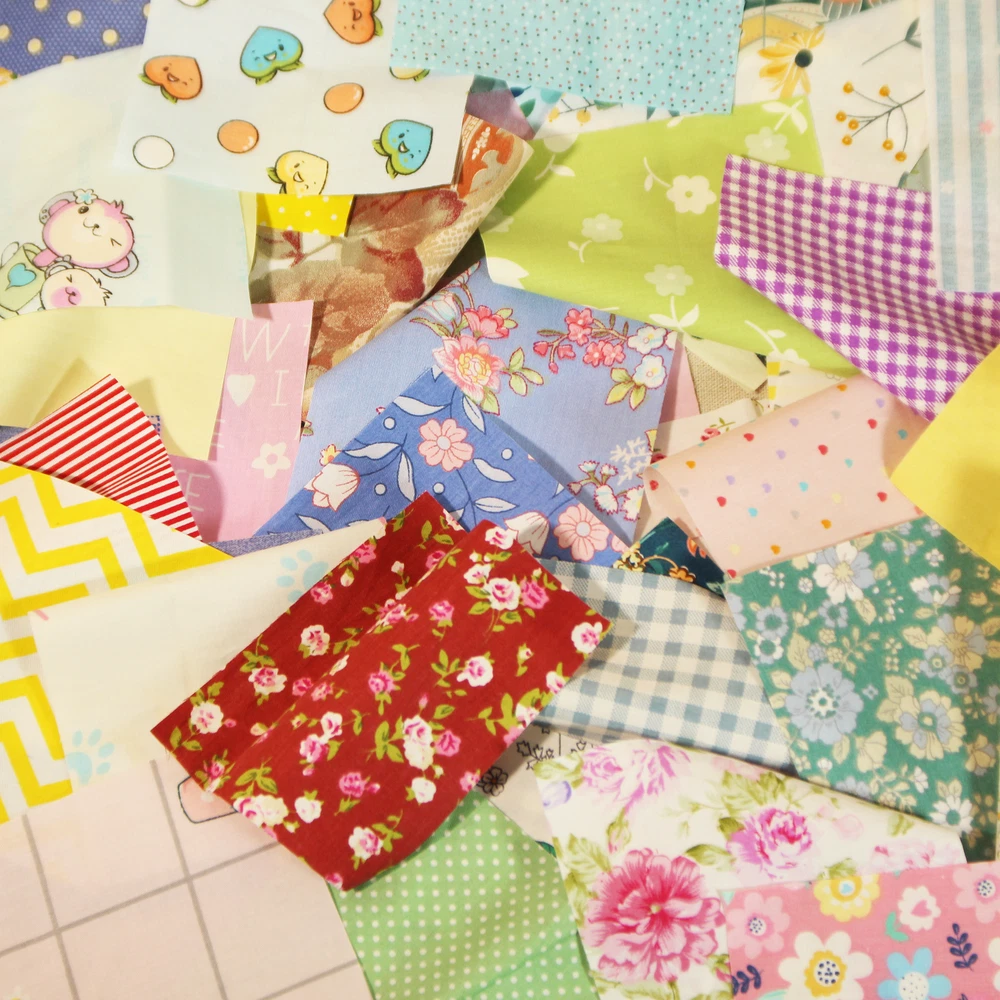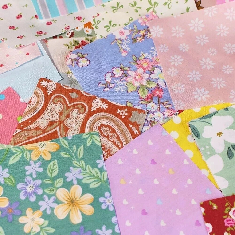 -100% brand new and good quality -Quantity: 100 pieces/set The package includes 100 different pieces squares fabric . Various/Mixed colours will vary on what is available at the time of order (images for illustration purposes only, colours and designs can not be guaranteed of the same per pack. -Size : 4inch squares ( maybe 1-3 mm error dut to due to manual cutting) -Color: 100 colors -Material: 100% cotton These fabrics are all 100% pure cotton and they are twill-woven.Its fabric structure is a twill weave with two threads going up and one thread going down, forming a 45° diagonal pattern on the left. It is not thick but very sturdy and durable, with excellent breathability and moisture absorption. It feels soft and not stiff when in contact with the skin. Suitable for : Crafting, Home Décor, Quilting, Sewing, doll ,handbag General, .......everything u want. Suit for sewing crafting, home decor, bag, quilting, table runner, pillow cover, sewing crafting decor, button covering,hair ties, hair clips,bear & toy making,badges,card making,blankets,Jam Jar covers and other things you want . We provide better service with cheap price.Don't hesitate to act. If you have any question ,please feel free to contact me
