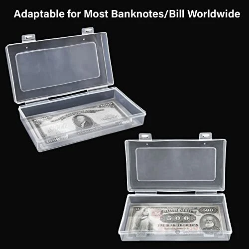 100 Pack Currency Sleeves with Case US Dollar Paper Bill Money Holders Protector You will receive 100 Pack clear banknote storage bags and a plastic storage box, suitable for storing most sizes of banknotes, banknotes, stamps, commemorative banknotes, tickets and collectibles, etc. The size of each transparent storage bag is about 6.8*3.3 inches, and the size of the storage box is 7*3.8 inches. Thick banknote storage bag, made of high-quality opp material, with high transparency and no impurities, making your collection more perfectly displayed in front of you. Using banknote storage bags can better protect your collections and commemorative banknotes. The double-button storage box is well sealed, strong and moisture-proof, bringing a more professional experience to your collection. It is the best gift for banknote collectors. 100 Pack Paper Money Holders with Plastic Storage Case. Size:6.8*3.3 inches Shipping We offer FREE shipping on all orders! We ship within Three business days of payment, usually sooner. We use a selection of shipping services such as UPS, FedEx, USPS etc. We only ship to the lower 48 states, no APO/FPO addresses or PO Boxes allowed. Local pickups and combined shipping options are not provided at this time. Return You can return a product for up to 30 days from the date you purchased it. Any product you return must be in the same condition you received it and in the original packaging. Please keep the receipt. Feedback Customer satisfaction is very important to us. If you have any problem with your order, please contact us and we will do our best to make you satisfied. Contact Us If you have any queries, please contact us via ebay. We usually respond within 24 hours on weekdays. Please visit our eBay store to check out other items for sale! Thank you for shopping at our store.