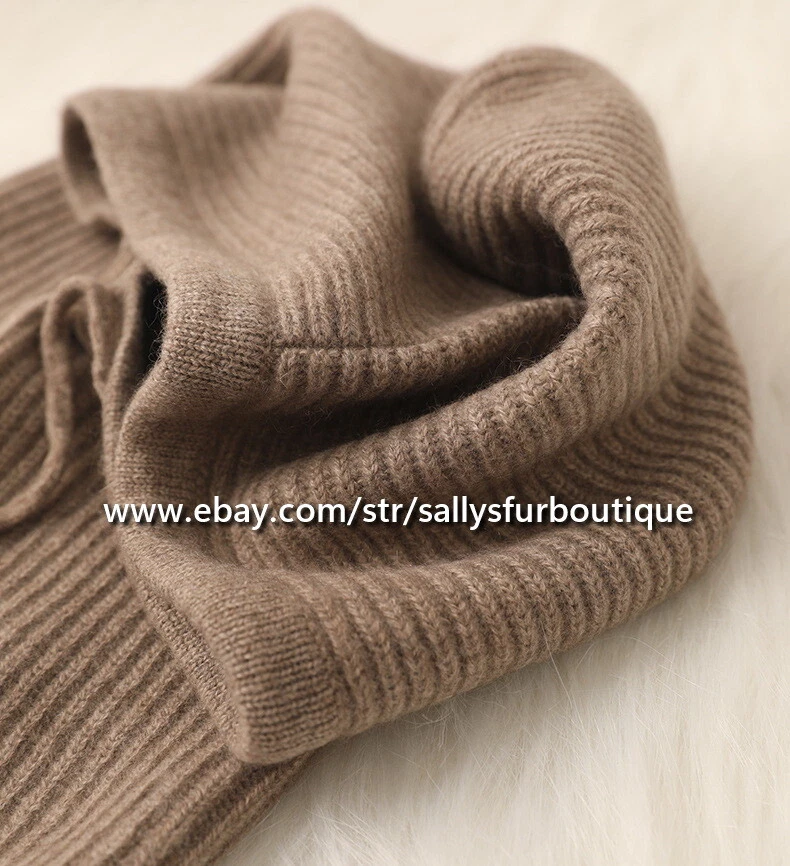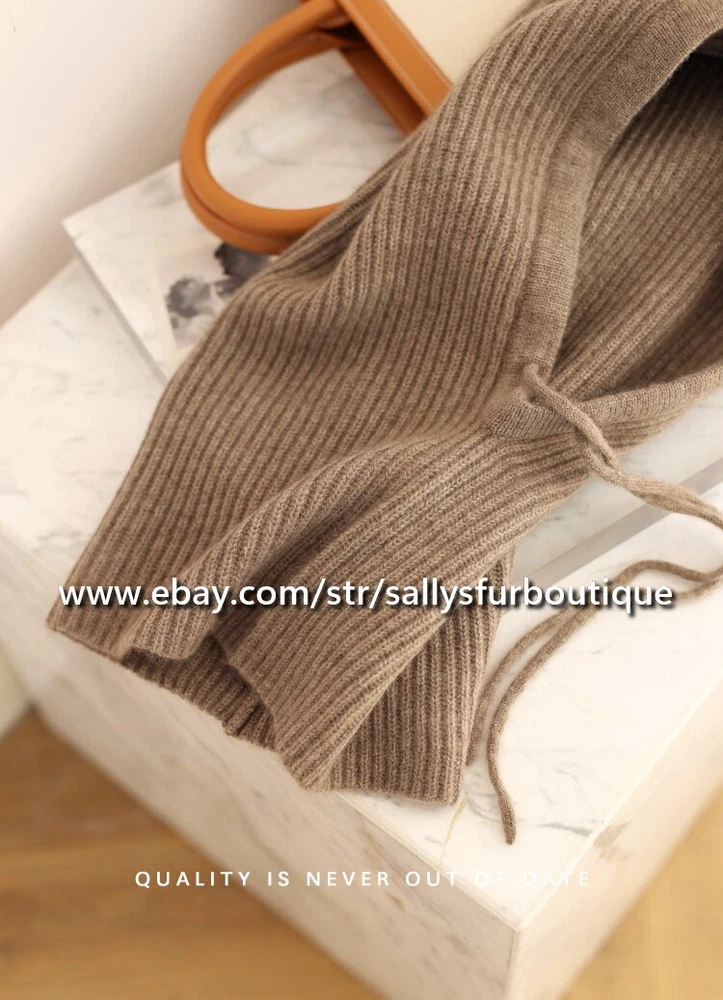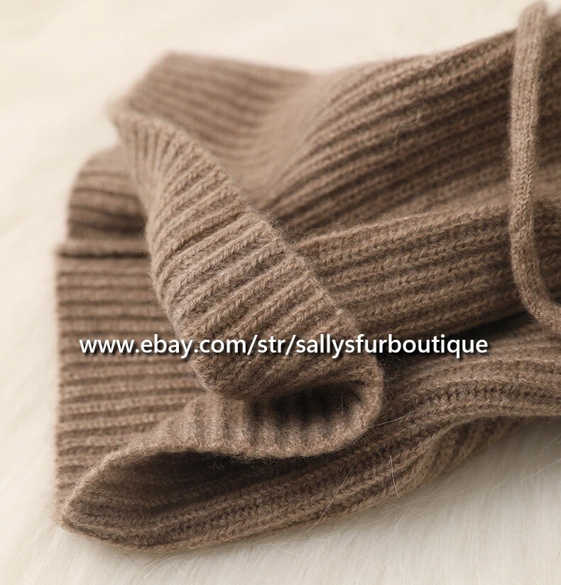 About Cashmere: Cashmere is a luxuriant wool that many a fashion-conscious woman has dreamed of wearing against her skin. Its silken feel, feather-light weight, and appreciable status make it highly desirable. It is the wool or fur of the Kashmir goat. 70% Kashmir goats in the world are raised in Inner Mongolia, China. Be wary of imitation cashmere. Often listings are stated as 100% cashmere, however are imitation cashmere, which does not have the special features of pure cashmere. Item description: Material: Pure cashmere, made in inner Mongolia. Size: 48cm High x 30cm Wide Lay flat Process: Double worsted twisted woven. Weight: 125 gram.