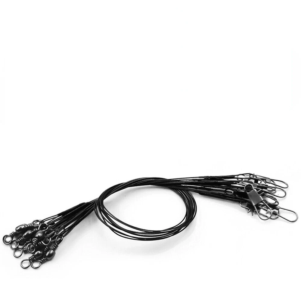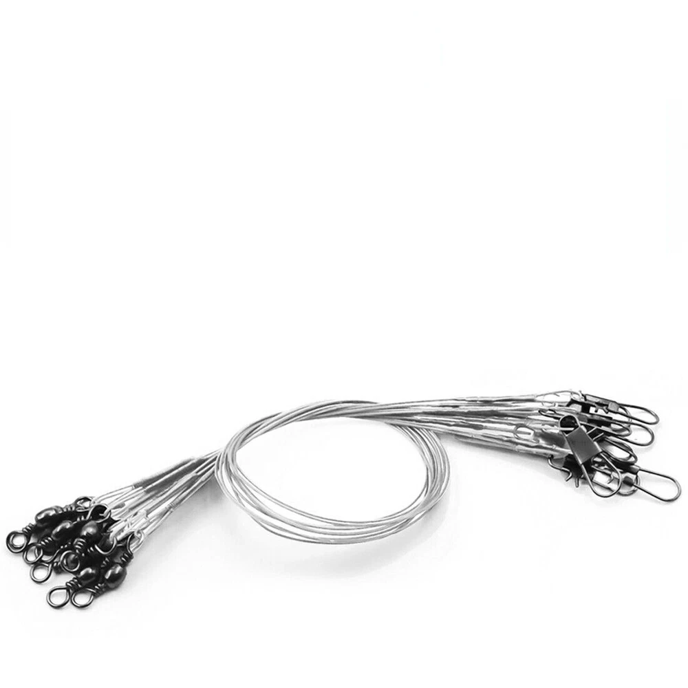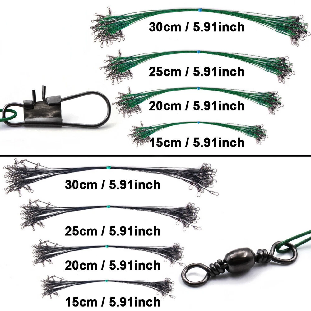 Steel fishing leaders,Durable and tough enough for fishes with sharp teeth.Apply to a variety of baits or lures.Work as steel leader fishing, fishing leaders saltwater, fishing rigs saltwater rig, saltwater fishing tackle kit leaders. SIZE--Length Approx 15cm / 5.9", 20cm / 7.9" 25cm / 9.8" and 30cm /11.8".Perfect fishing wire leader, attach your fishing hooks with leader, steel leaders fishing saltwater, steel fishing leaders,steel leader line fishing,wire leaders for fishing, steel leader, muskie fishing gear, bass hooks fish leade freshwater fishing tackle. TMATERL--You use barrel fishing swivels and swivels fishing tackle these steel leaders will let you catch your desired fish without trouble. Great fish leader freshwater fishing tackle for fishing and catfish rigs. SPECAIL DESIGN--Steel fishing line leader,Work great as fishing leader variety pack, ice fishing leader line, hi lo rig saltwater fishing, fishing steel wire for catfishing hooks, pike leader, steel leader line,leader fishing line swivel Feature a tough barrel swivel at one end, and an interlok snap at the other. HIGH QUALITY--Crimps are very smooth. It can be easily connected to the hook and provides top quality abrasion resistance,in Saltwater/Freshwater/River/Lake.