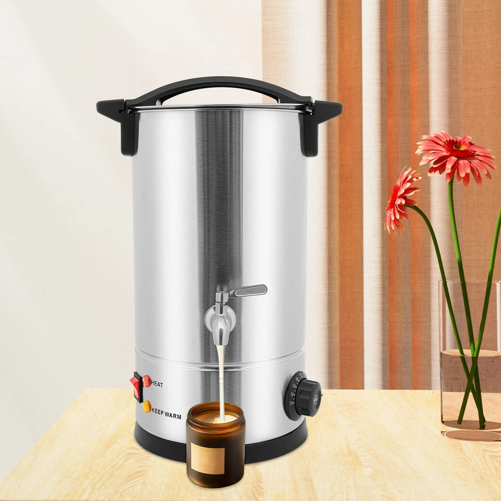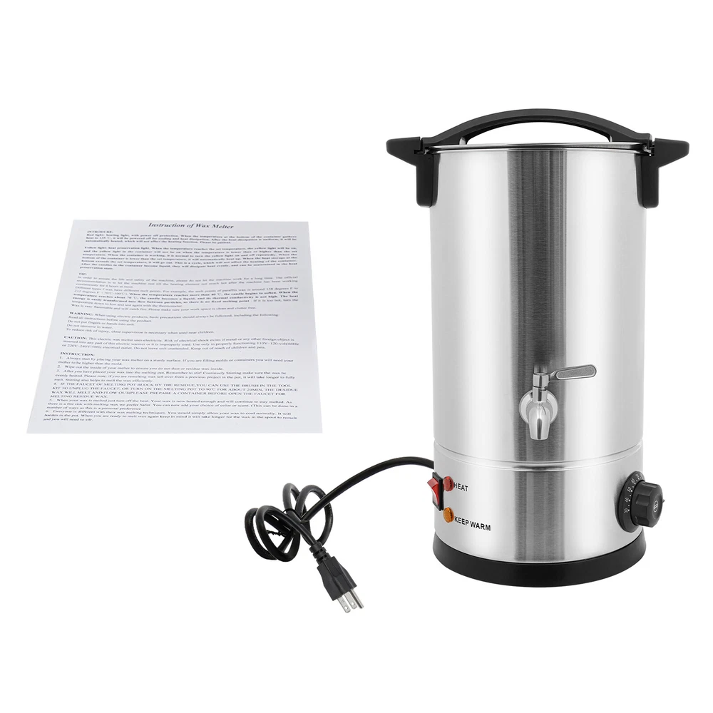 10L Electric Wax Melt Oven Large Stainless Steel Wax Melter for Candle Making Description Description Made of sturdy and durable material, this wax melter is safe and reliable to ensure your long-term use. It adopts efficient heating technology and intelligent temperature control technology, ensuring that every drop of wax reaches the right temperature, helping you to complete efficient and precise wax melting work. Key Features Durable Material: The outer austenitic stainless steel and inner SUS 304 stainless steel ensure that this product is rust-proof, impact-resistant, and corrosion-resistant, with excellent sturdiness and durability to ensure long-term safe use. Efficient Tool: The base is equipped with a full-slot heater, with an effective power of 1200W, which adopts double-ring poly-energy heating technology to melt candle materials quickly and evenly, energy efficient and quick, say goodbye to the trouble of mushy bottom. Double-layer Insulation: This product adopts the double-layer structure of austenitic stainless steel outer layer and SUS304 stainless steel inner layer, which can effectively reduce heat loss and make the product have better insulation effect. Large Capacity Design: The inner diameter is 7.48 inches and the depth is 9.84 inches, which ensures a sufficient capacity of 1.77 gallons to meet your needs of melting candle ingredients in large quantities. Adjustable Temperature: You can achieve precise temperature control (86-230°F) through the control button according to the actual needs of wax production. Humanized Design: There is a thermostat at the bottom, when the liquid reaches the temperature you set, it will automatically enter into a constant temperature state to prevent the wax from solidifying. If the temperature of the wax liquid is below the set temperature, the wax melter automatically heats up to the set temperature. Safety Protection: Designed with anti-dry burning overheating safety protection, when the machine is in a state of lack of wax and the temperature at the bottom is too high, it will automatically cut off the power to guarantee your safety. There are also breathable holes designed to guarantee the same air pressure inside and outside the wax melter to improve safety. Beautiful and Fashionable: The classic silver color scheme and simple and smooth appearance can be highly adapted to any decorative style, becoming a discreet and attractive landscape in your room. Customer Service: We aim to provide quality products and services. If you have any problems, please feel free to contact us. We will reply and solve the problem for you as soon as possible. Details Sturdy Locking Lid: It prevents wax leakage and ensures excellent heat retention. The rotating lid also ensures a tight seal and ease of use. Anti-slip Base: The round base has a non-slip design and is not easy to fall off, increasing stability during use. Convenient Handle: The two side handles are not only anti-scald but also easy for you to carry to the desired scene at any time. Thoughtful Faucet: It provides smoother wax dispensing and also facilitates you to better control the amount of wax dispensed. Application It can be used to melt many types of wax, such as soy wax, paraffin wax, beeswax, etc. It is widely used in homes, factories, farms, small candle stores, gift stores, etc. How to Use Prepare candle candle-making kit. Fill with wax (not included), adjust the temperature, plug in and turn on the wax melter, and add fragrance or dye (not included). Pour liquid into candle mold. Cool and remove from the mold. Enjoy your candle. Specification Mount Type: Desktop Assembly Required: No Color: Silver Material: Austenitic Stainless Steel, SUS 304 Stainless Steel Style: Modern Shape: Cylinder Capacity: 10L/2.64 Gallons Actual Capacity: 6.7L/1.77 Gallons Working Modes: Heat/Keep Warm Temperature Range: 30-110°C/86-230°F Rated Power: 1200W Rated Voltage: 110V-120V Rated Frequency: 50Hz-60Hz Power Source: Corded Electricity Plug Type: US Standard Inner Size (D*H):19*25cm/7.48*9.84in Product Size (D*H):20.5*39cm/8.07*15.35in Package Size: 47*27*27cm/18.5*10.63*10.63in Gross Weight: 2.8kg/6.17lbs Net Weight: 2.4kg/5.29lbs Package Included 1* Wax Melter 1* English Manual Notes Please check the style and size before purchasing. Please read the instruction manual and labels completely before use, and pay particular attention to the safety instructions included. Please keep it in a stable place away from flammable objects to avoid tipping over or causing fire due to accidental collision. Please make sure the surrounding environment is well-ventilated during use. Please ensure that children and pets are kept away from the wax melter during use to prevent burns or other hazards. Please allow the slight color difference caused by the shooting light and 1-3cm error due to manual measurement and make sure you do not mind before ordering. Payment Delivery details Terms of sales About us Contact us Payment We accept ebay payment 。 Fees such as import duties, taxes are not included in the item price or shipping costs. These charges are the buyer's responsibility. Delivery details Shipping: 2-9 working days to: USA Terms of sales We maintain high standards of excellence and strive for hundred percent customer satisfaction. Feedback is very important to us. We hope that you contact us immediately before you give neutral or negative feedback, so that we can address your concerns. It is impossible to address issues if we do not know about them! About us Your satis faction is our ultimate goal. We work hard to earn your trust and future business. Our certified technicians have tested each item before shipping. The unit comes with 1 year limited warranty on all manufacturing defects. a) If you receive a defective item, you may return it or ask for a discount. Please contact us within 14 days after you receive the package. b) What you returned must be intact and in its original packaging as re? u. Cust