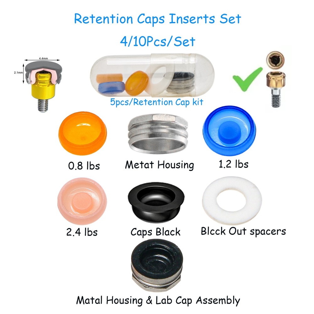 10Pcs Overdenture Dental Locator Abutments Retention Caps For Implant Inserts Modle: Caps: 5Pcs/1Set Removable Male Caps, Yellow Xtra-Soft Retentive Cap(0.8 lbs) Blue Strong Retentive Cap (1.2 lbs) Pink Strong Retentive Cap (2.4 lbs) Block-Out Spacer Black Caps Metal Caps Metal Housing Laboratory Processing Cap ●Packages:10Pcs/Set。 ●Introduction: White Metal Housing Overdenture Caps (Metal Retention cap.) Laboratory Processing Cap (only Used for debugging) 0.8lbs Overdenture Caps-yelloe 1.2lbs Overdenture Caps-blue 2.4lbs Overdenture Caps-pink Block Out Spacers ●Material : PEEK ● Male Caps kit 1pcs Metal Housing Overdenture Caps 1pcs 0.8lbs Overdenture Caps 1pcs 1.2lbs Overdenture Caps 1pcs 2.4lbs Overdenture Caps 1pcs Block Out Spacers Material : PEEK PEEK can withstand higher temperature and pressure, high tensile strength, high performance and high stability than nylon. ●PEEK can withstand higher temperature and pressure, high tensile strength, high performance and high stability than nylon. ●These dental overdenture locator abutment retention caps inserts come in a convenient set of 10 pieces, providing essential components for denture stabilization. The universal design ensures compatibility with various dental systems, making them versatile for different patient needs. These retention caps help secure overdentures firmly in place, offering patients improved comfort and confidence while speaking and eating. The inserts are precisely engineered to maintain consistent retention force and durability over time. Each cap in this set is designed to provide reliable attachment between the denture and locator abutment. Perfect for dental professionals looking to maintain a stock of quality replacement parts for their overdenture cases. The set includes different retention levels to accommodate various patient requirements and preferences. ●COMPATIBILITY: Universal design fits most dental overdenture locator abutments for secure and reliable retention ●PACKAGE CONTENTS: Set includes 10 pieces of replacement retention caps for extended use and convenience ●RETENTION LEVELS: Multiple retention strengths available to accommodate different patient needs and preferences ●DURABLE CONSTRUCTION: Made from high-quality dental-grade materials for long-lasting performance and reliability ●EASY INSTALLATION: Simple snap-in design allows for quick and straightforward replacement of worn retention caps ●Note:For Overdenture Locator Abutment. FDA Statement The sale of this item may be subject to regulation by the U.S. Food and Drug Administration and state and local regulatory agencies. If so, you can bid on this item only if you are an authorized purchaser. If the item is subject to FDA regulation, I will verify your status as an authorized purchaser of this item before shipping of the item. Seller's name: dentsuper City State: Zhengzhou, Henan China Telephone number:+86371-86052021