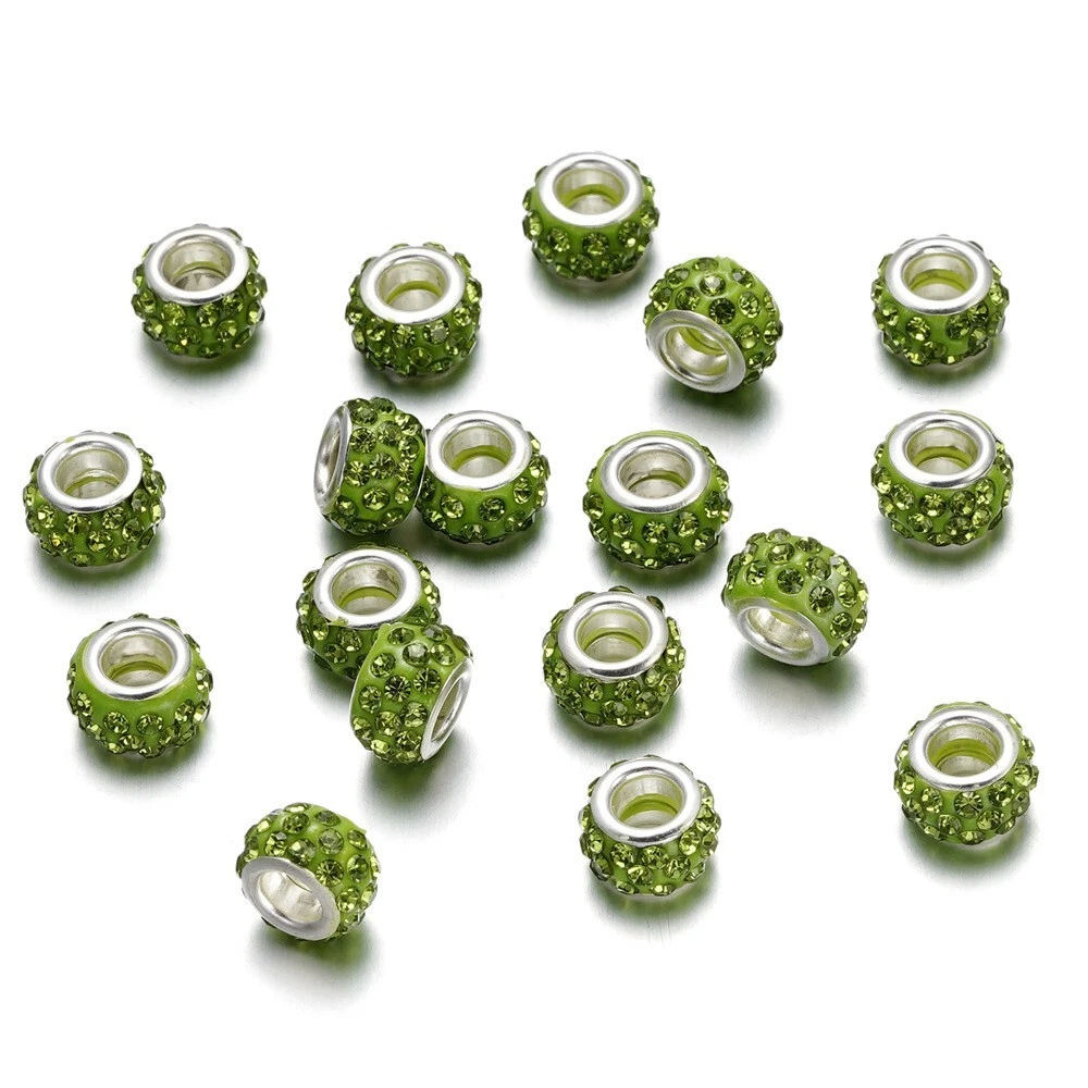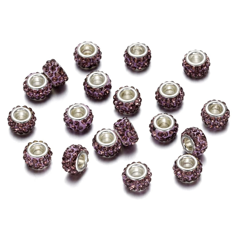 10pcs Crystal Polymer Clay Rhinestone European Large Hole Rondelle Beads 12x5mm Description: Material: Polymer Clay Size: diameter: 12mm; hole: 5mm Color: Multicolor Features: This product consists of 10 multicolor rhinestone European large hole rondelle beads measuring 12-12.9 mm in size. The beads are made of crystal material with a bling finish, designed in a spacer style. They are embellished with polymer clay and are ideal for crafting jewelry. The beads are from China and have a unique design that adds a touch of elegance to any jewelry piece. Package Includes: 10Pcs