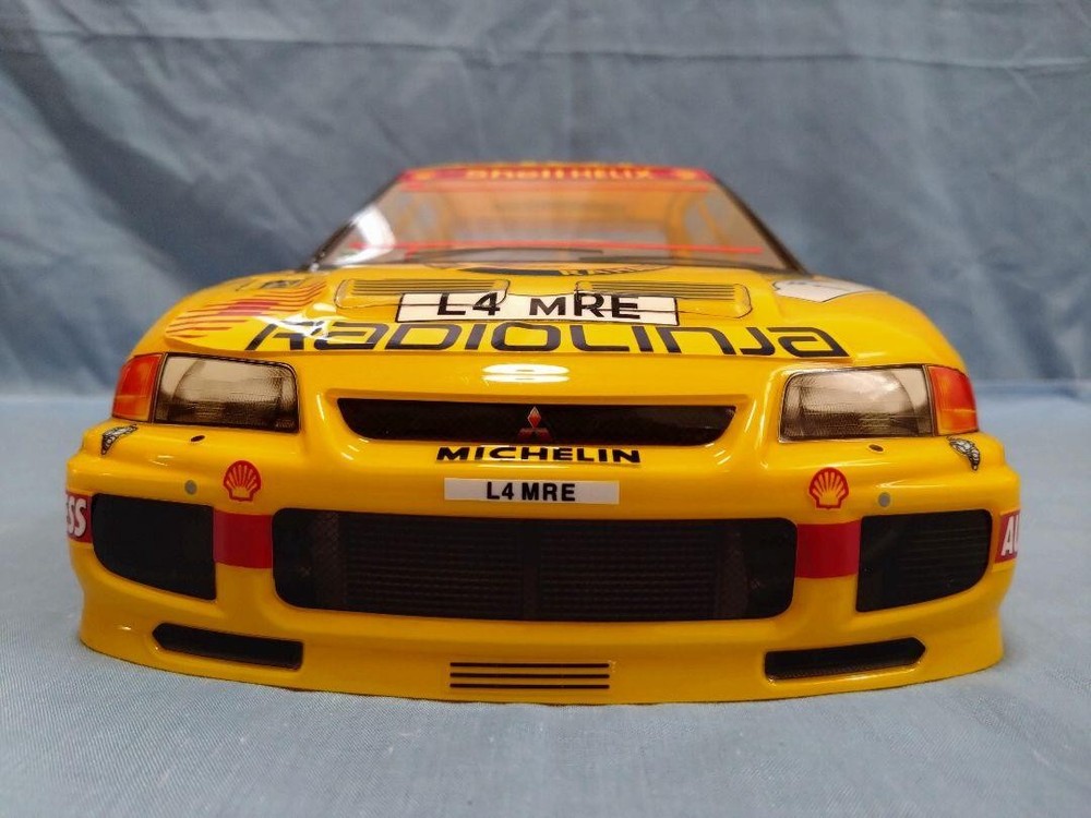 Everything in the first image is included. This is an unused, unrun product made for display. This is a part for radio-controlled (RC) cars. It is a 1/10 touring car body for Tamiya TA, TB, TT chassis, etc. The wheelbase is 10.12 inches. This is a Lancer Evolution III in rally (1995 1000 Lakes) specifications. Body mount holes are not pre-drilled, so please drill them to match your chassis. The body cut, masking, body painting, and stickers were done by an amateur. I promise fast shipping via FedEx or DHL as soon as possible! Import duties, taxes and charges are not included in the item price or shipping charges. These charges are the buyer’s responsibility. These charges are normally collected by the delivering freight (shipping) company or when you pick the item up - do not confuse them for additional shipping charges.