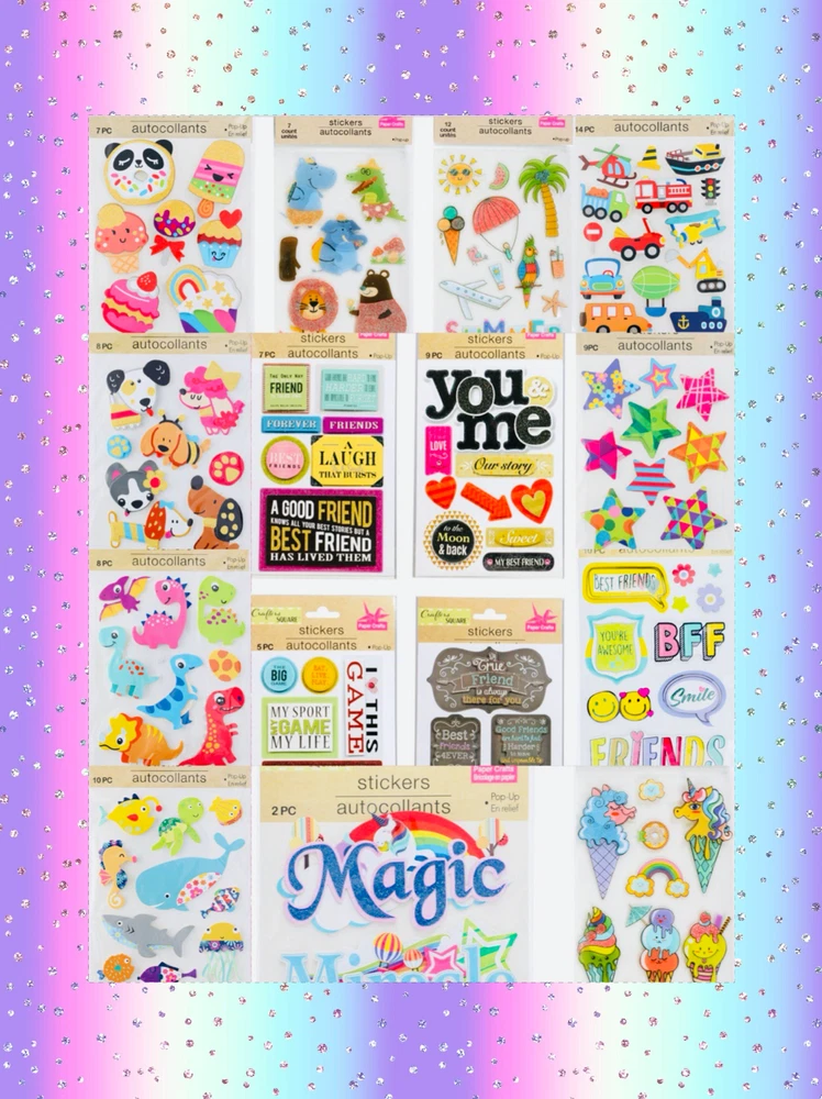HUGE Mixed Sticker Lot | The Ultimate Kit | Qty. 1109+ Stickers | High Quality Only! Fun Assortment of Puffy, Scrapbook, Cartoons, Bubble, Pop Up Stickers Packs For Everyone! You will receive 29+ Sticker Sheets of beautiful colorful assortment. The Pack will include 1109+ Stickers overall! I have included a large variety of pictures of the assortment available. The pictures give you an idea of what you will be receiving. Please Note: You will not receive everything pictured. Please contact me with any special requests. This HUGE Variety of fun designs stickers can be used in parties, classroom, school and home, good for reward for students, potty training, adding inside a birthday card, game activities, entertaining toddlers, etc. Perfect Gifts for Kids & all Occasions: Can be given as a gift for kids, girls, boys, toddlers, teens, students, friends, and classmates, they will love it!