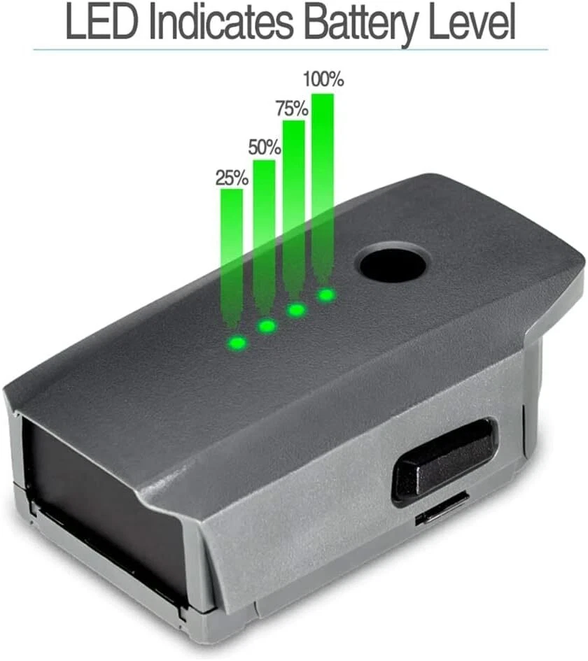Product Description Specifications: Battery type: Lithium-Polymer Battery Output voltage: 11.4V Capacity: 3830mAh Power: 43.6Wh Battery Weight: 230g /8.11oz Power ON/OFF: Press once and holder the circular power button for 2 seconds to power on/off Compatible with: DJI Mavic Pro DJI Mavic Pro Platinum DJI Mavic Pro Alpine White Original DJI Mavic Pro Charger Not compatible with DJI Marvic 2 Package includes 2 x Battery for DJI Mavic Pro Drones NOTE: Please fully charged the battery before the first-time flight, and make several times flight test to make sure the battery fits your Mavic Pro Drone. And better charge with the OEM charger to avoid problems. Product Guarantee: Any problem, please feel free to contact us. Please click the "Ask a question" on our storefront or in "YOUR ORDER" options click the "contact seller". Tips: 1. Please fully charge the battery before each use. 2. Do not subject batteries to adverse conditions such as extreme temperature, deep cycling. Never leave a charging lithium battery unattended. 3. When the battery is unused, please take it out from the drone and store it in a dry, clean, cool, away from heat and metal objects. 4. When the battery is not used for a long time, we recommend using the battery at least once every two to three weeks. 5. After use, it is recommended that the battery be cooled and then recharged.