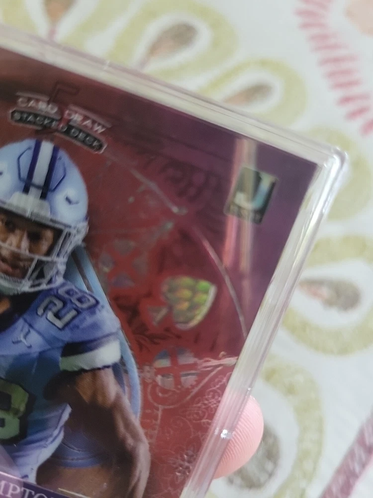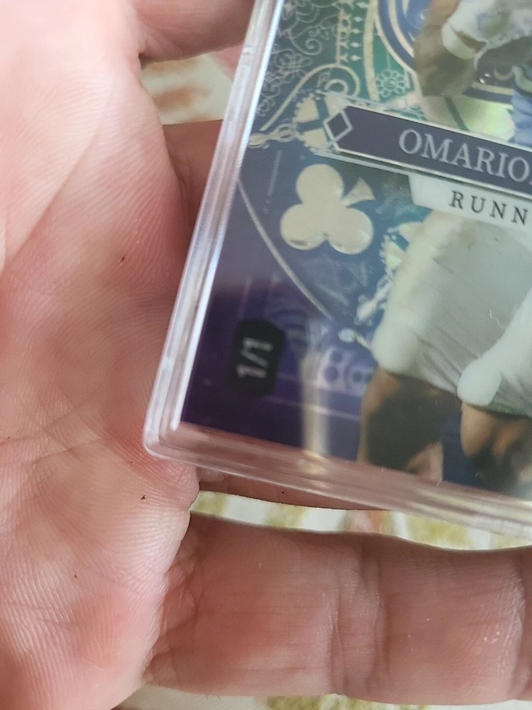 For the avid collector of sports trading cards, here is a rare opportunity to own a one-of-a-kind card featuring Omarion Hampton, a talented player from the North Carolina Tar Heels team. This card is from the 2023 Wild Card set and is a five-card draw stacked deck Ace of Spades, which adds to its uniqueness and value. The card is printed in purple lazer prizm and is serial numbered, making it a valuable addition to any collection. It is a pre-rookie card and features a hologram, making it an even more unique and desirable card. This Wild Card is manufactured by a well-known company and is perfect for fans of the National Collegiate Athletic Association (NCAA) and football in general.