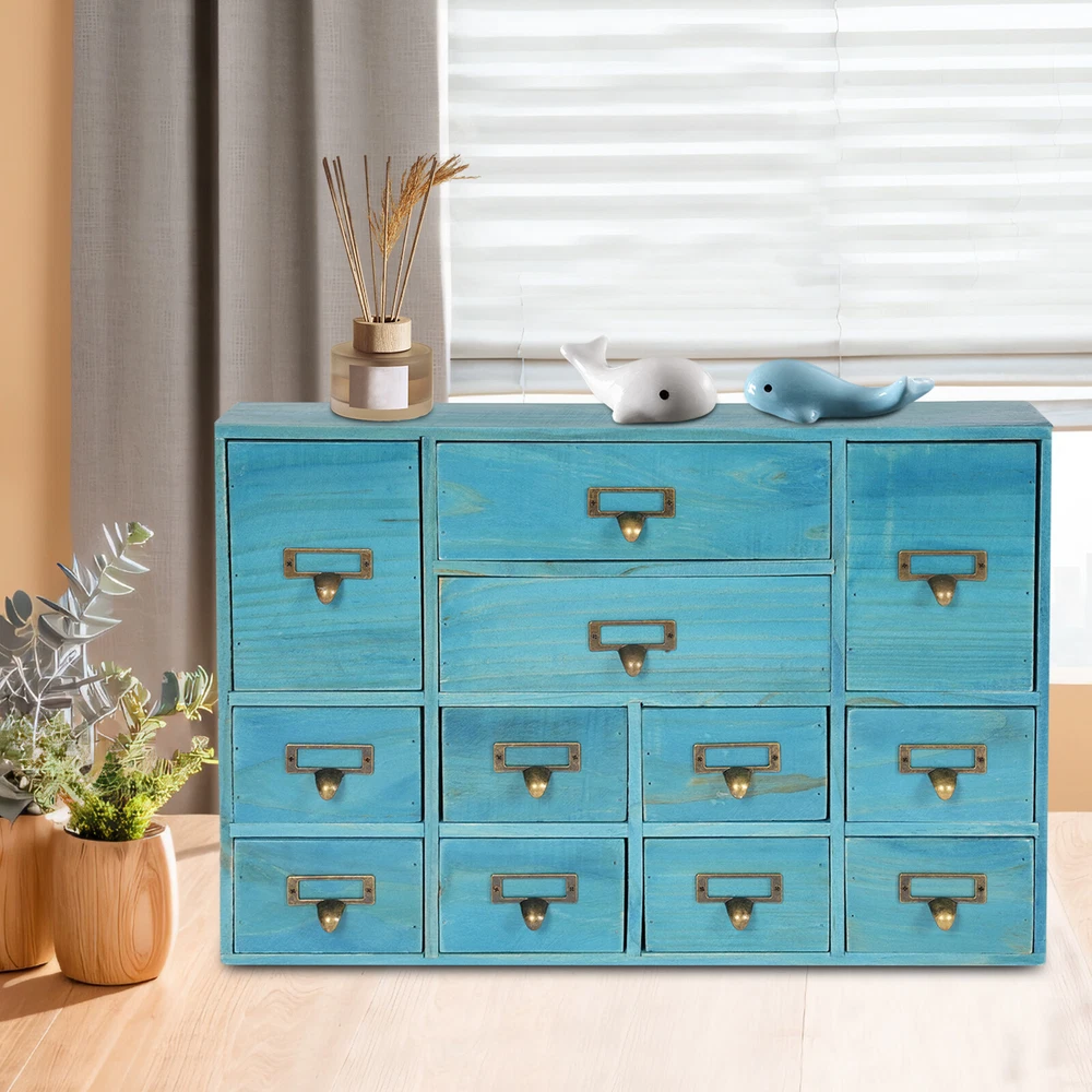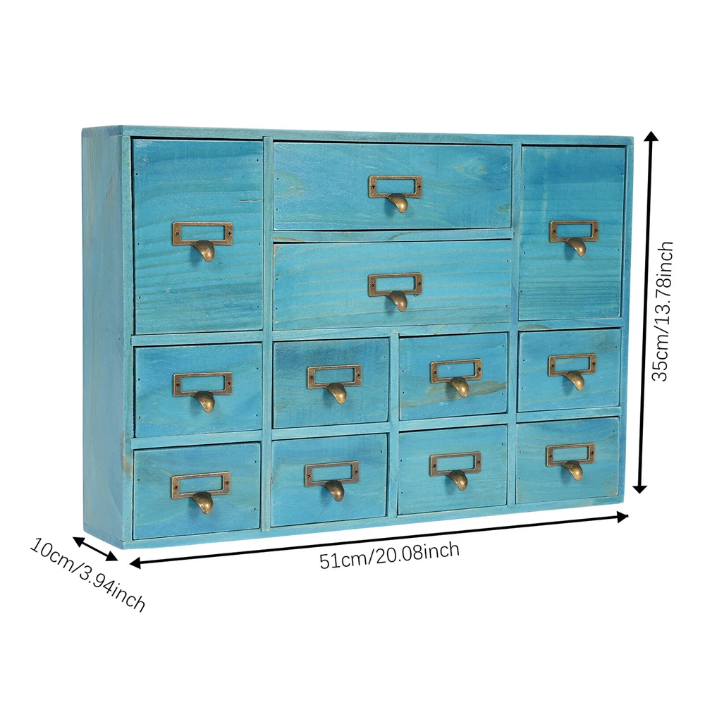 Specification Color: Blue Shape: Rectangular Mount Type: Tabletop Assembly Required: No Number of Drawers: 12 Material: Plywood, Pine Wood, Zinc Alloy Process: Spray Painting, Aging Indoor/Outdoor Usage: Indoor Load Capacity: 10kg/22.05lbs Package Size: 54*38*14cm/21.26*14.96*5.51in Product Size: 51*10*35cm/20.08*3.94*13.78in Gross Weight: 5kg/11.02lbs Net Weight: 4.5kg/9.92lbs Package Included 1* Desktop Drawer Organizer 12 Drawers Wooden Desktop Organizer Home Storage Case Cosmetic Dresser Box new Description Do you feel annoyed by too many cluttered and unorganized items on your desktop? Our desktop drawer organizer can help you solve this problem. This product is made of high-quality plywood, which is moisture-proof, sturdy, and durable. The 12 drawers are convenient for you to organize different daily items. Our product can effectively help you reduce the pressure on your countertop, which is an ideal choice for you. Key Features Selected Material: The premium plywood and pine wood with spraying painting and aging processes make this product durable, environmentally friendly, and rust-resistant , ensuring a long service life. Elegant Appearance: The classic look and natural wood grain can serve to decorate a room, and it can easily be incorporated into any décor to add a splash of color to a space. Save Space: Its compact size (20.08*3.94*13.78 inches) and 3-tier design make full use of tabletop and vertical space, and keep your room neat and clean. Categorized Storage: The product has 12 independent drawers and comes in three sizes, allowing you to store your items in different drawers according to their size and to be categorized and organized. In addition, the top can also be used to hold items, allowing you to maximize the use of your space. Ready to Go: You can use the product directly after receiving it without installation, which saves you a lot of time. Easy to Clean: Thanks to its simple structure and smooth surface, you can wipe the dirt from it with a soft cloth, which is convenient. Ideal Gift: Thanks to its practicality and beauty, you can give it to your friends as a holiday or housewarming gift! Buy with Confidence: We stand behind all our guests and look forward to assisting you with your purchase. It is our pleasure to answer your confusion and questions. The end of the story between us is not "we sell and you buy". Details Practical Handles: The zinc alloy handles are convenient for you to pull the drawer easily to get the needed items. Label Slot: It is convenient for you to label the outside of the different drawers so you can sort and search. Smooth Edge: The smooth edges not only add to the aesthetics of the product but also improve the safety of use. Application Our products are suitable for use in the home and office for storing documents, office supplies, books, jewelry, remote controls, keys, stationery, diaries and other small items, medicines, jewelry, crafts, cosmetics, oils, office supplies, tea bags, coffee gear, essential oils, lipsticks, children's toys, blocks, pencils, erasers, notebooks, perfumes, nail polish, brushes, earphones, chargers, handicrafts, spare parts, needle and thread supplies, snacks, push pins, mail/receipts, tapes, etc, as well as for organizing cosmetics and other personal items. Specification Color: Blue Shape: Rectangular Mount Type: Tabletop Assembly Required: No Number of Drawers : 12 Material: Plywood, Pine Wood, Zinc Alloy Process: Spray Painting, Aging Indoor/Outdoor Usage: Indoor Load Capacity: 10kg/22.05lbs Package Size: 54*38*14cm/21.26*14.96*5.51in Product Size: 51*10*35cm/20.08*3.94*13.78in Gross Weight: 5kg/11.02lbs Net Weight: 4.5kg/9.92lbs Package Included 1* Desktop Drawer Organizer Notes Please note that other objects are not included except the drawer organizer. Please check the size carefully before ordering. Please allow the slight color difference caused by the shooting light and the 1-3 cm error due to manual measurement, and make sure you do not mind before ordering. Payment Delivery details Terms of sales About us Contact us Payment We accept ebay payment 。 Fees such as import duties, taxes are not included in the item price or shipping costs. These charges are the buyer's responsibility. Delivery details Shipping: 2-9 working days to: USA Terms of sales We maintain high standards of excellence and strive for hundred percent customer satisfaction. Feedback is very important to us. We hope that you contact us immediately before you give neutral or negative feedback, so that we can address your concerns. It is impossible to address issues if we do not know about them! About us Your satis faction is our ultimate goal. We work hard to earn your trust and future business. Our certified technicians have tested each item before shipping. The unit comes with 1 year limited warranty on all manufacturing defects. a) If you receive a defective item, you may return it or ask for a discount. Please contact us within 14 days after you receive the package. b) What you returned must be intact and in its original packaging as re? u. Customer is responsible for shipping costs of the returned item. c) We will cover the cost of shipping back t with the shipping rate indicated in the registration page. We will send you a new unit or refund the full payment you paid. Thank you. Contact us Business Hour Business Hour: Monday To Friday: 8:30 AM to 5:00 PM (Beijing China time) Due to time zones, our reply to your questions may not be immediately. But within above working time, we will reply your email within 24 hours. If it's non-workdays, please kindly be patient and wait till Monday. Please contact us with ebay message. Please feel free to contact us if you have any questions. Monday To Friday: 8:30 AM to 5:00 PM (Beijing China time) Due to time zones, our reply to your questions may not be immediately. But within above working time, we will reply your email within 24 hours. If it's non-workdays, please kindly be patient and
