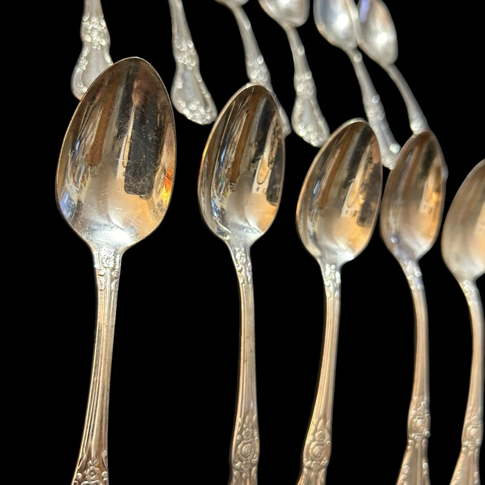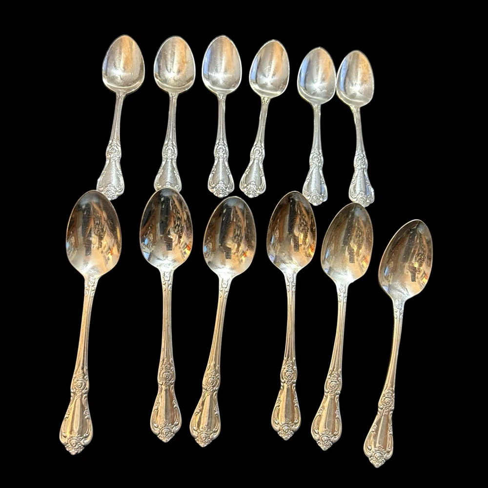 12 Oneida Rogers Francesca Vanessa Teaspoons 6” Dessert Spoons Silver Plate 1965 Good used condition. Normal signs of wear and tear. Minor scuffs and scratches, and discolorations. Please study pictures carefully before purchasing Feel free to ask us any questions. Thank you for visiting our store! Bag33A