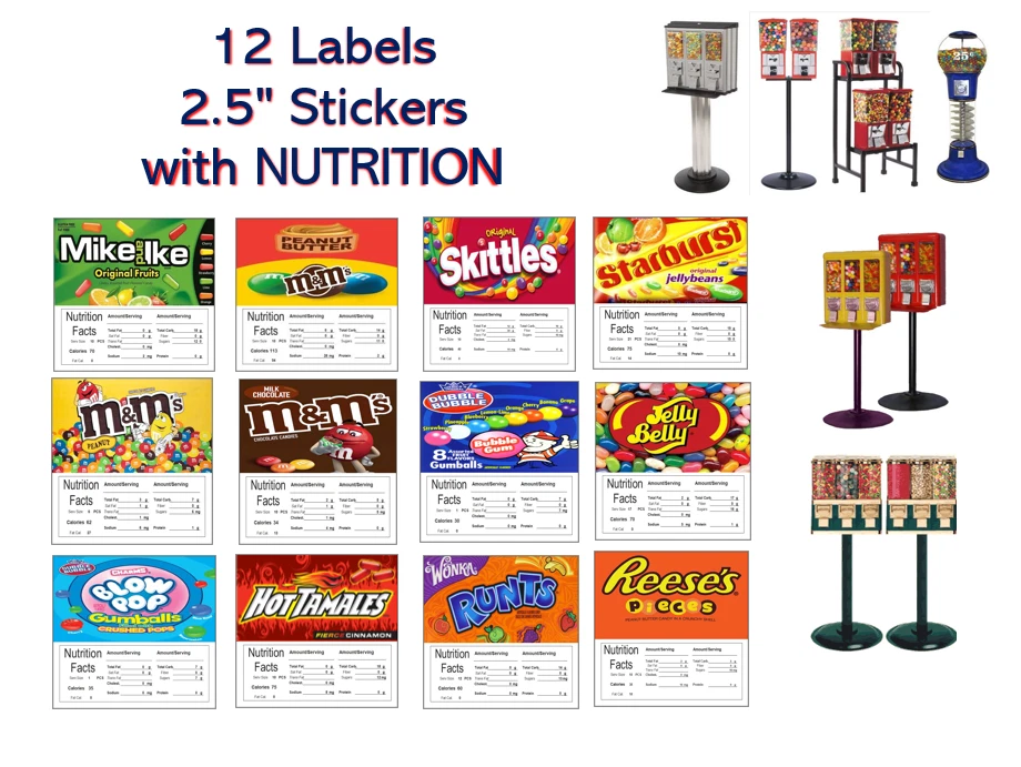 FREE SHIPPING in US Your Purchase Includes 12 any ones pictured These Stickers measure 2.5" x 2.5 " These are New Stickers not the old OEM Paper ones from vendstar These stick on the outside of the machine You'll get a popular mix of 12 Stickers as shown above or choose any you want and indicate it in the notes section when you check out Dont see what You need? Ask me I have lots of others also Shipping is FREE!!