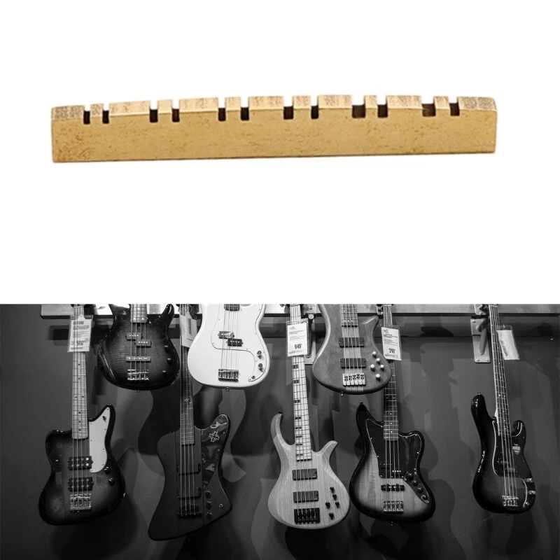 12 String Guitar Nut Saddle Premium Brass Pre-Slotted Top Nut Flat Bottom Features: Made from premium brass for enhanced tone, sound and volume. The replacement for your existing bridge saddles and Pre-slotted for quick installation. Designed for modern and vintage electric guitars. Package includes: 1x Brass Nut. Specifications: Brass Size: As Shown in the Picture Package Includes: 1x Brass Nut note: Please allow 1-2cm errors due to manual measurement, make sure that you do not mind before you order. Due to the difference between different monitors, the picture may not reflect the actual color of the item.