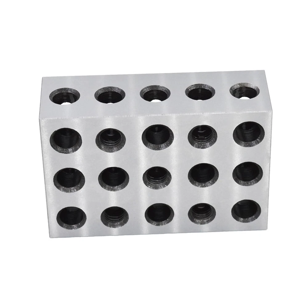 Robust and durable - Heat treated and case hardened to HRC 57-62. Made of precision-grade tool steel hardened and ground on all 6 sides of block Precise - Accuracy and squareness on all sides within 0.0001-0.0002 Feature - Cross drilling design gives minimum weight and maximum strength 23 holes consists of 5 tapped holes that are 3/8-16 for clamping and 18 untapped holes Cross drilling design allows for efficient use of lower weight with maximum strength Package includes - 2 x matched pair 1-2-3 set up blocks 1-2-3 Machinist Blocks 23 Holes Matched Pair Dimensions 1" x 2" x 3" Precision Overall size is within +/- .0002" Flatness and parallelism are within 0.0002" Squareness on all sides to within 0.0002" Pairs are matched to a tolerance of 0.0002" 2 x Machinist set up blocks