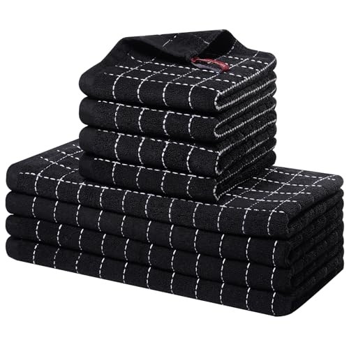 Return Policy Fast Delivery Trusted seller Kitchen Towels and Dishcloths Set, 12 x 12 and 13 x 28 Inches, Set of 8 Bulk Cotton Terry Kitchen Towels Set, Checkered Designed, Soft and Super Absorbent Dish Cloths, Black Product Description 100% COTTON: Made of 100% cotton material making these towels long lasting and strong for all household chores, soften with every washing, so these dish towels won't scratch your delicate cookware, plates and pans. SUPER ABSORBENT: Designed with upgraded terry structure, making them lightweight, super absorbent and dry quickly. They can absorb plenty of liquid or oil stains to easily and effortlessly achieve the most cleaning effect. STRONG ENOUGH TO TACKLE ANY JOB: High-quality, luxuriously soft quick dry towels for kitchen, absorbent kitchen washcloths to assist with all your kitchen needs. Suitable for dry glassware, cookware and anything beyond the kitchen. VALUE PACK AND EASY TO STORE: The collection includes 4-pack cotton dishcloths and 4-pack cotton dish towels, measuring 12 x 12 inches and 13 x 28 inches, the perfect size for your daily needs. EASY TO CARE: Machine wash with cold water, gentle cycle, tumble dry low. Do not use bleach or fabric softeners as this will affect the longevity and absorbency of the towels. Low iron if needed. Shipping Returns Payment Shipping Shipping is FREE to all addresses other than APO/PO boxes in the lower 48 states. All our stock ships from US-based warehouses. Shipped via USPS or UPS (depending on location and package weight) Unless stated otherwise, all orders will ship within 24-72 hours of your payment being processed. Check our feedback to see the great reviews of FAST shipping we offer. Returns Seller does not accept returns Payment We currently accept payment via eBay managed payments only. Once payment is cleared, we will dispatch your shipment within 1-3 business days. Please refer to the "Shipping" tab for more information regarding shipping speed to your destination.