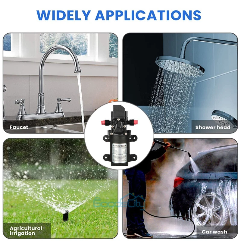 12V 130PSI Water Pump Pressure Diaphragm Self Priming Pump for RV Boat Caravan Ship within 24 hours. 100% New & Excellent Quality Strictly QC, Each item was fully checked before shipping FREE & FAST Shipping delivery with Tracking Number This 12 volt DC diaphragm self-priming sprayer is a multi-purpose water pump, can be used for Garden and sprinklers, showers, water taps in the boat, caravan, travel trailers, RV or home motor. It is great for a Caravan, Camper, RV, Boat, Marine, Home Garden and Camping. Description: Easy to install. Runs dry without system. Easy connecting system. Totally sealed, high stable pressure. Self priming, silent running, low power consumption. Motor duty cycle will vary with load and ambient temperature. Applications: Car washing machine, the solar energy water, remote control water equipment, some place need to control the switch frequently, somewhere energy saving, etc. Note: This item has built-in test water pressure switch. Water pressure is generally adjusted by the size of the nozzle flow. The adjustable range is 0 to 0.9 mpa. In front of the pump head, there are two lines, which can connect a micro switch to control the water pressure. You need to install this switch by yourself according to your requirements. Connected water inlet pipe length: on the ground 3.5 meters, height 2 meters. This has much to do with your operation. Specification: V olts: DC12V Current:6A Power (max): 70W Pressure(max):9KG Input water pressure: 0.2Mpa Max Output water pressure: 0.9Mpa Pressure setting: 130PSI Largest Flow: 6L/min Protection Valve Type: intelligent valve (with Pressure switch) The absorption process: 2.5 meters Pump Head: 20-30m Rotational Speed: 4500r/min Material: ABS Color: Black Drive Method: Electric Pump shaft position: Horizontal Impeller structure: Seal type Impeller amount: Single Impeller suction way: Single Performance: High Pressure Pumped Medium: Clean Water Inlet and outlet size: pipe thread 10mm / straight insert 10mm Dimension: 16.5cm(L) x 9.6cm(W) x 6cm(H) Range of application: Spraying, washing, raised pressure, spray insecticide etc Package including: 1 x Diaphragm Water Self Priming Pump Return Delivery details Payment FAQ's Contact us Return If you found that the item was damaged when you get it, pls contact us firstly Delivery details We Ship to Payment address ONLY. Payment PayPal accepted. FAQ's None Contact us Welcome to contact us for any question.