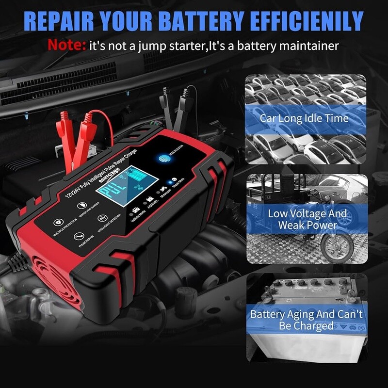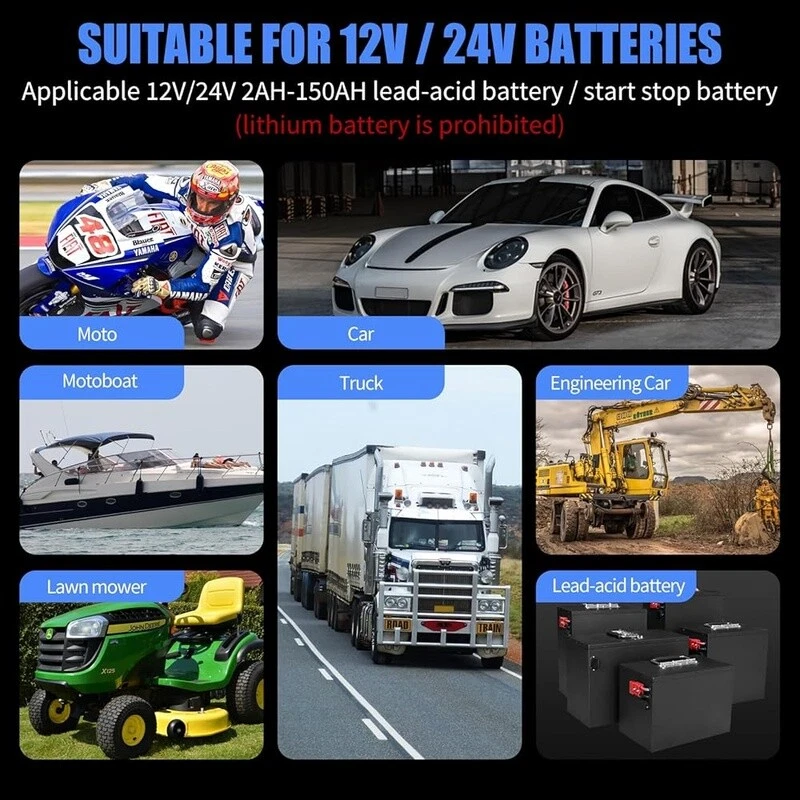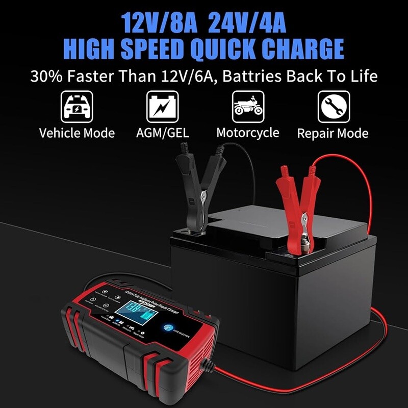Portable Butane Camping Stove 10000 BTU Lightweight Outdoor Cooking Emergency US 34.59 USD 36.41 USD Free shipping 5% off Portable Dual Fuel Stove Butane Propane 7800 BTUs Auto Ignition Camping Case 51.52 USD 54.23 USD Free shipping 5% off Portable Camping Stove Propane Outdoor Cooking Hiking Backpacking Lightweight US 19.12 USD 20.13 USD Free shipping 5% off Propane Butane Camping Stove 10000 BTU Auto Ignition Portable Gas Burner New 51.52 USD 54.23 USD Free shipping 5% off Portable Butane Camping Stove 7500 BTU Foldable Gas Cooker W/ Carry Bag New 44.16 USD 46.48 USD Free shipping 5% off Dual Fuel Portable Stove 12000 BTU Propane Butane Camping Emergency Cooking Kit 45.63 USD 48.03 USD Free shipping 5% off Portable Camping Stove Lightweight Piezo Ignition Wind Resistant Compact Cooking 10.74 USD 11.3 USD Free shipping 5% off Portable Camping Stove 8871 BTU Windproof Compact Easy Ignition Hiking Picnic US 48.57 USD 51.13 USD Free shipping 5% off 12V 24V Smart Battery Charger Automatic Trickle Maintainer Lead Acid Batteries 42.68 USD 44.93 USD Free shipping 5% off 7.5W Solar Battery Charger Trickle Maintainer 12V Portable Waterproof Panel Kit 47.1 USD 49.58 USD Free shipping 5% off 20V MAX Lithium Battery Charger Compatible W/ 12V 20V Lithium Ion Batteries New 32.37 USD 34.07 USD Free shipping 5% off 4 Bay AA AAA Battery Charger Type C Fast Charging NiMH Li-ion LED Slots New 11.17 USD 11.76 USD Free shipping 5% off About this item All in 1 Lead Acid Battery Chargers, Maintainers and Desulfurizers:12V 8 Amp, 24V 4 Amp quick battery charger, It's smaller but delivers more power. It's the all-in-one solution battery charger, battery maintainer, trickle charger, plus battery desulfator. Charge or repair all 12V and 24V lead-acid automotive, marine, and deep-cycle batteries, including AGM, GEL, SLA, and Flooded in cars, trucks, SUVs, motorcycles, lawnmowers, boats, marine, etc. Efficient Pulse Repair, Battery Rejuvenation:Battery chargers automobile 12 / 24 volt input power: 100-240V. Adopts high-power high-frequency low-frequency pulse technology, which can better eliminate the vulcanization phenomenon of the battery, help restore the lost performance of the old/idle battery, and prolong. NOTE: It can not activate a dead battery or repair a damaged battery, also can't jump-start the car. Visualization Charging: Automatic charging when connected. Temperature will be automatically detected without setting. Automatic charging protects your battery from being overcharged and you can leave the charger indefinitely. LCD screen display makes you can check the charging and battery status, charge voltage, charge current, inside temperature, power display, repair mode, wrong battery connection warning, etc. 8 Charging Protection, Never get stranded again:Top rated car battery charger can be optimized for the climate, and easily handle various over-cooling and over-heating voltage environments. Provide up to 8 items of charging protection, such as reverse polarity, overheating, overcurrent/overvoltage, short circuit protection, etc. Lightweight and Portable, Easy to Operate:12 volt battery charger weighing only 1. 2 lbs, it will automatically stop when it is fully charged, and you do not need to wait during the charging process. , easy to carry and store. The car battery charger mode has a memory function. After charging, it defaults to the state mode used before the last power outage. Brand: Color: Red Product Dimensions: 6. 7"D x 2. 3"W x 3. 9"H Output Voltage: 24 Volts, 12 Volts Specification Met: UL, FCC, RoHS You may also like 47 Inch Gaming Desk Home Office Computer Desk Adjustable Storage Writing Table 102.27 USD Free shipping Compact Computer Desk W/ Monitor Stand Reversible Storage Shelves Gaming Office 98.79 USD 103.99 USD Free shipping 5% off Computer Desk A-Frame Design W/ Hutch Durable Particle Board Home Office New 77.45 USD Free shipping 27oz Ceramic Cereal Bowls Set of 6 Dishwasher Microwave Safe Kitchen Dining New 57.33 USD Free shipping 47 Inch Gaming Desk W/ Monitor Stand Adjustable Storage Modern Office Desk New 90.15 USD 94.89 USD Free shipping 5% off L Shaped Computer Desk W/ Reversible Storage Shelves Home Office Gaming New 117.78 USD Free shipping 48 Inch Computer Desk, Modern Simple Style Desk for Home Office, Writing Desk 85.23 USD Free shipping Small Computer Desk with 2 Drawers for Bedroom, Office Desk Study Writing Table 92.98 USD Free shipping Computer Desk Modern Writing Desk Gaming Desk Easy Assembly Metal Frame US 123.98 USD Free shipping Ceramic Dinnerware Set 12 Pcs Scratch Resistant Microwave Dishwasher Safe New 105.94 USD Free shipping 47 Inch Space Saving Modern Computer Work Desk W/ 4 Drawers Simple Modern New 147.23 USD 154.98 USD Free shipping 5% off 8PCS Stainless Steel Mixing Bowls Set Airtight Lids Grater Non-Slip Bottoms New 51.52 USD 54.23 USD Free shipping 5% off
