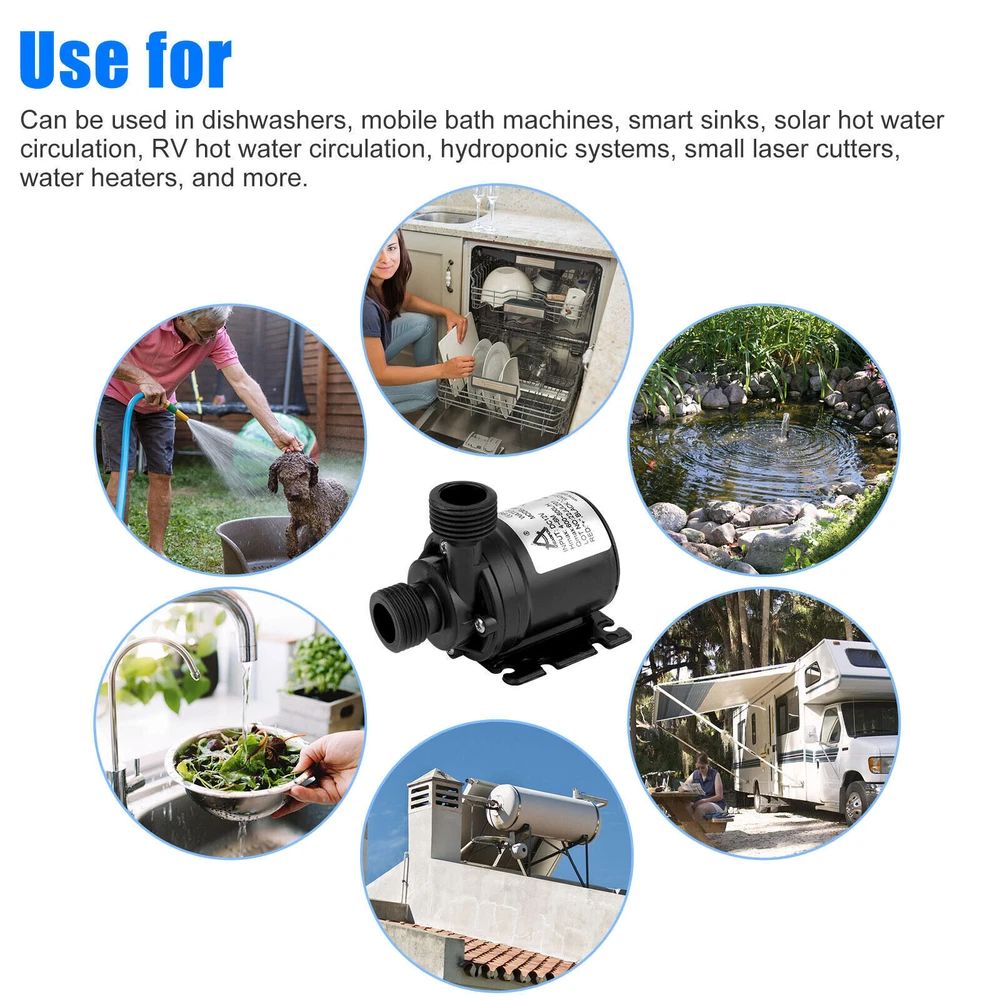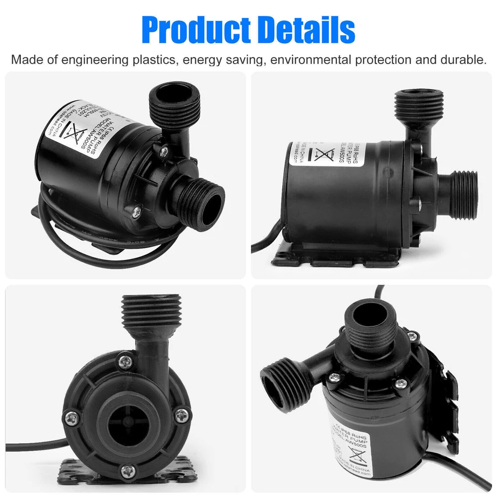Feature: Type:12V Small Brushless Submersible Pump Colour:Black Material:Engineering Plastic Dimensions:80x77x49mm (3.15x3.03x1.93in) Voltage:DC12V Rated Power:19W Flow:800 L/H Suction Diameter:16mm Discharge Diameter:12mm Noise:≤35dB Rated Head:5 (m) Water Temperature:0~60℃ (Hot Water Pump/Cooling Water Pump) Flow Characteristics:Qne In And One Out Cable:50cm (19.7in) Material: Made of engineering plastics, energy saving, environmental protection and durable. Durability: The brushless submersible pump adopts advanced electronic components and high-quality wear-resistant shaft, which is stable and reliable in operation, low power consumption, high efficiency, can work continuously for a long time, low noise, safety and environmental protection. Use for: Can be used in dishwashers, mobile bath machines, smart sinks, solar hot water circulation, RV hot water circulation, hydroponic systems, small laser cutters, water heaters, and more. Package Included:(as your choose) 1/2/3/4 x 12V Small Brushless Submersible Pump