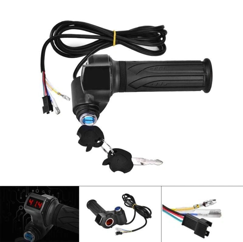 Features: This pair of handlebar grip adopts good quality materials, waterproof, sturdy and . The handlebar grip are design according to ergonomics, the on it are good for comfortable and anti skid holding. Easy to install and use, the cable length is about 2m, enough for most uses. With electric lock function, suitable for electric , cars, scooters. Specification: Material: Rubber + Color: Black Power Display: suitable for 12V, 24V, 36V, 48V, 60V, 72V Hall Input Voltage: 0.8-4.2V Waterproof Grade: Rainproof Quantity: 1pair Handlebar Size: Approx. 15 x 9cm / 5.9 x 3.5in Cable Length: Approx. 2m / 6.56ft Weight: Approx. 323g Package List: 1 x Pair of Grips 2 x Keys Note: Each cable is labeled with color for different uses. Blue: Electric Lock Yellow: Motor Positive Electrode Green: Hall Motor Black: Handlebar Negative Red: Handlebar Positive Please note that the new type and old type of this product will be sent randomly, and make sure you will not mind before ordering.