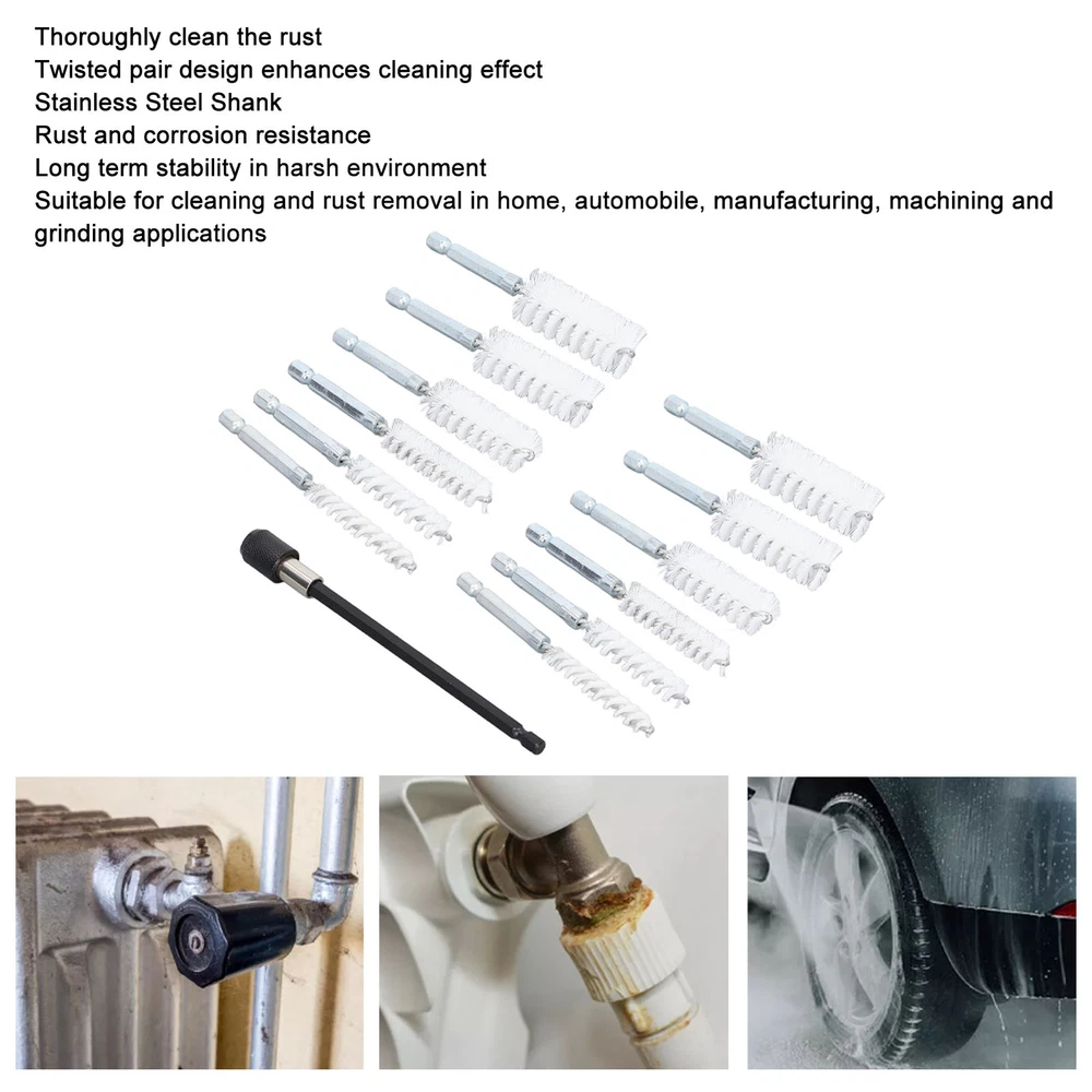 Feature: 1. 6 Specifications: The pack contains 6 kinds of bore brushes with different diameters to meet your different cleaning needs, and there are two of each diameter for replacement. 2. Hex Shank: Each bore cleaning brush has a standard 1/4 inch shank, which can be connected with a hand drill or an electric drill for more efficient cleaning. 3. Ease of Use: Excellent wire brush can thoroughly clean rust and details, and twisted pair design enhances cleaning effect. 4. Premium Material: The shank is made of stainless steel, which is resistant to rust and corrosion and has long term stability in harsh environments. 5. Multiple Applications: The hole brush set is suitable for cleaning and rust removal in home, automobile, manufacturing, machining and grinding applications. Specification: Item Type: Bore Brush Set Shank Material: Stainless Steel Size: Brush Length: Approx. 100mm/4in Brush Diameter: Approx. 8mm/0.31in, 10mm/0.39in, 12mm/0.47in, 15mm/0.59in, 17mm/0.67in and 19mm/0.75in (2 pcs each) Hex Shank Size: Approx. 6.3mm / 1/4in Extension Rod Length: Approx. 15cm/5.9in Package List: 12 x Bore Brush Set 1 x Extension Rod 1. Our listing price includes the value of goods,packaging cost,and export taxes,not including international duties. 2. duties,taxes,and charges are not included in the item price or shipping fee. 3. T he duties are buyers' responsibility .Please check with your country's customs office determine what these additional costs will be prior to your purchase. 4. All disputes arising from the duties will be submitted to ebay for solution. 1. Any questions, pls. contact us via ebay message or email us. We will reply your message within 48 hours. If you do not receive our reply within 48 hours, pls. post a message again beuse sometimes our message system may block some emails. 2. If you are satisfied with our service, pls. kindly leave us a positive feedback and give us the Detailed Seller Rating with all " 5 " in very area 3. Our aim is to provide Level Customer Service, your recognition will encourage us greatly and serve you better. We strive to keep all our customers satisfy. We will do our up most to exceed your expectations in customer service, communition and dispatching of your orders.