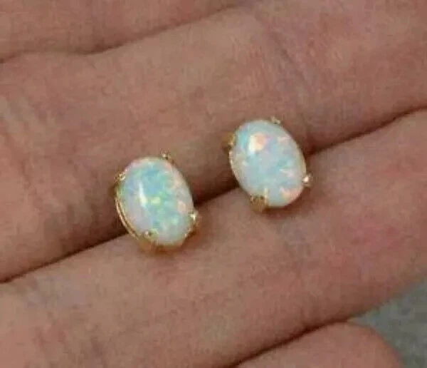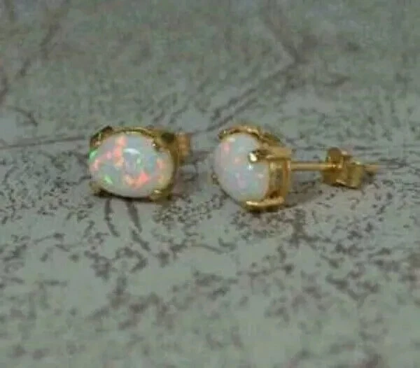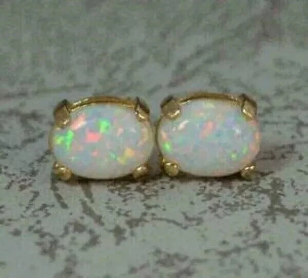 1.30Ct Oval Cut Fire Opal Pretty Solitaire Stud Earrings 14K Yellow Gold Finish