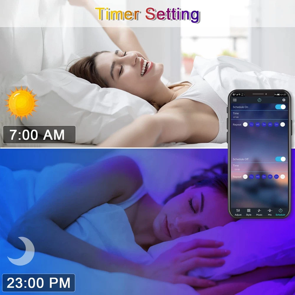 💡Super Multicolor Lights: The LED lights has 16 million full color + 22 dynamic modes.Colorful lights can create different atmospheres, you can use the LED lights for bedroom, kitchen, living room, game room,etc.Enjoy your colorful life. 🎶Lights that Sync with Music: The lights has a music mode,it built-in microphone,which can change color, rhythm with the music.It's so much fun! Let's dance with the music,enjoy the happy hour 📱Bluetooth LED Lights with IR Remote Control: The support IR remote & Bluetooth APP control,APP has more functions to choose from. You can freely set the color,brightness,mode and timing function.Design your dream world as you like ⚙️Widely Used Cutable Strip Lights: The 130ft long led lights can be DIY cutting,it can be used for home decoration,suitable for Christmas,Halloween,etc.Note that connectors are required after cutting(The product does not contain connectors) Superior Quality: The LED light strip use 5050 RGB beads,equipped with high-quality 24V adapter,which is more energy-saving and environmentally friendly, safe and secure.It is not waterproof,use it indoors.