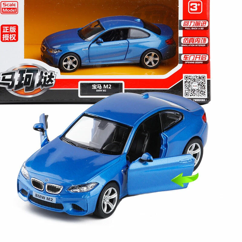 This 1/36 scale BMW M2 diecast model is a fantastic mini replica with impressive details! The pull-back function makes it fun for kids, while the opening doors add realism. The sturdy metal and ABS construction feels premium, and the white-and-blue color scheme looks sleek. Perfect as a gift or collectible—great size for play or display. Kids and car enthusiasts will love it!