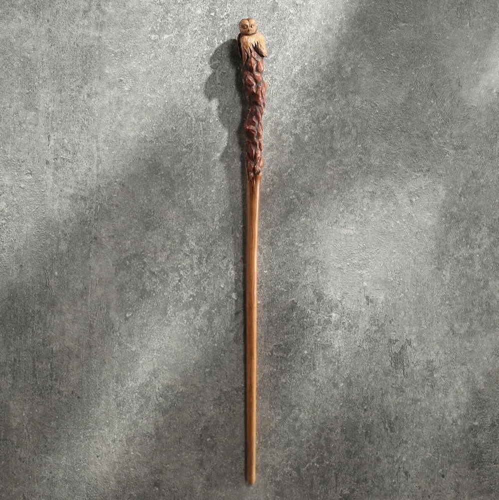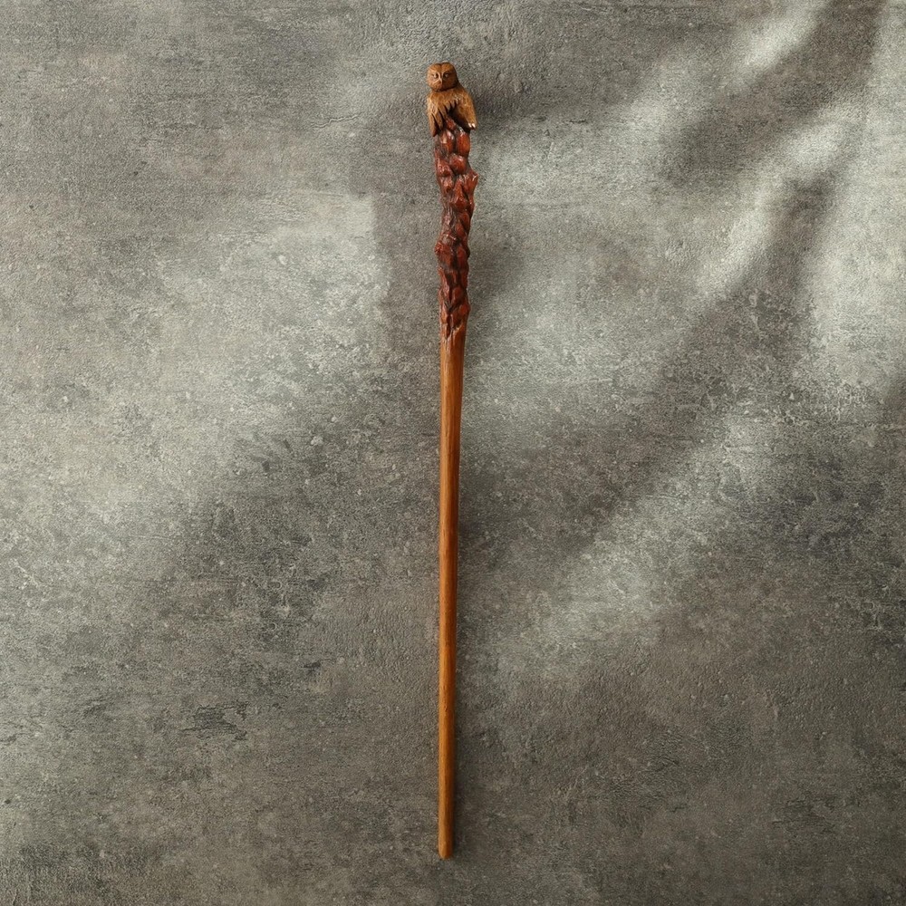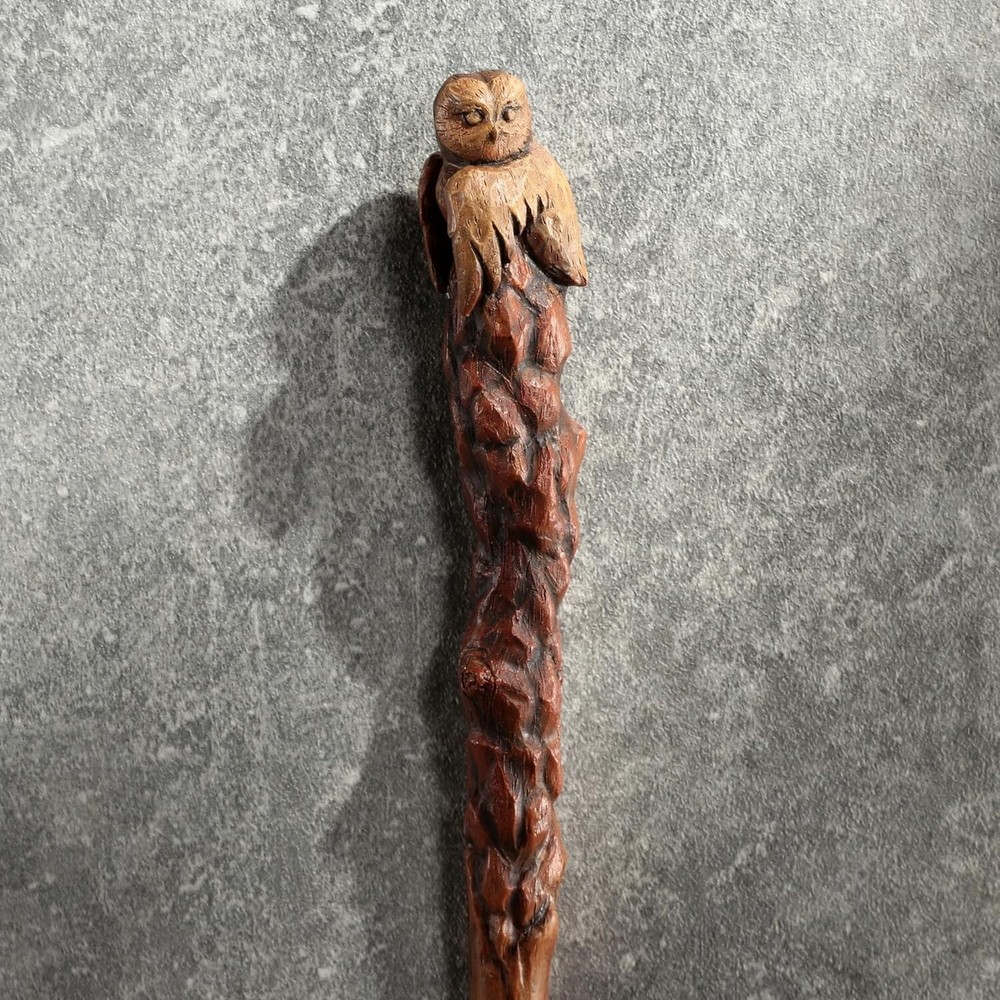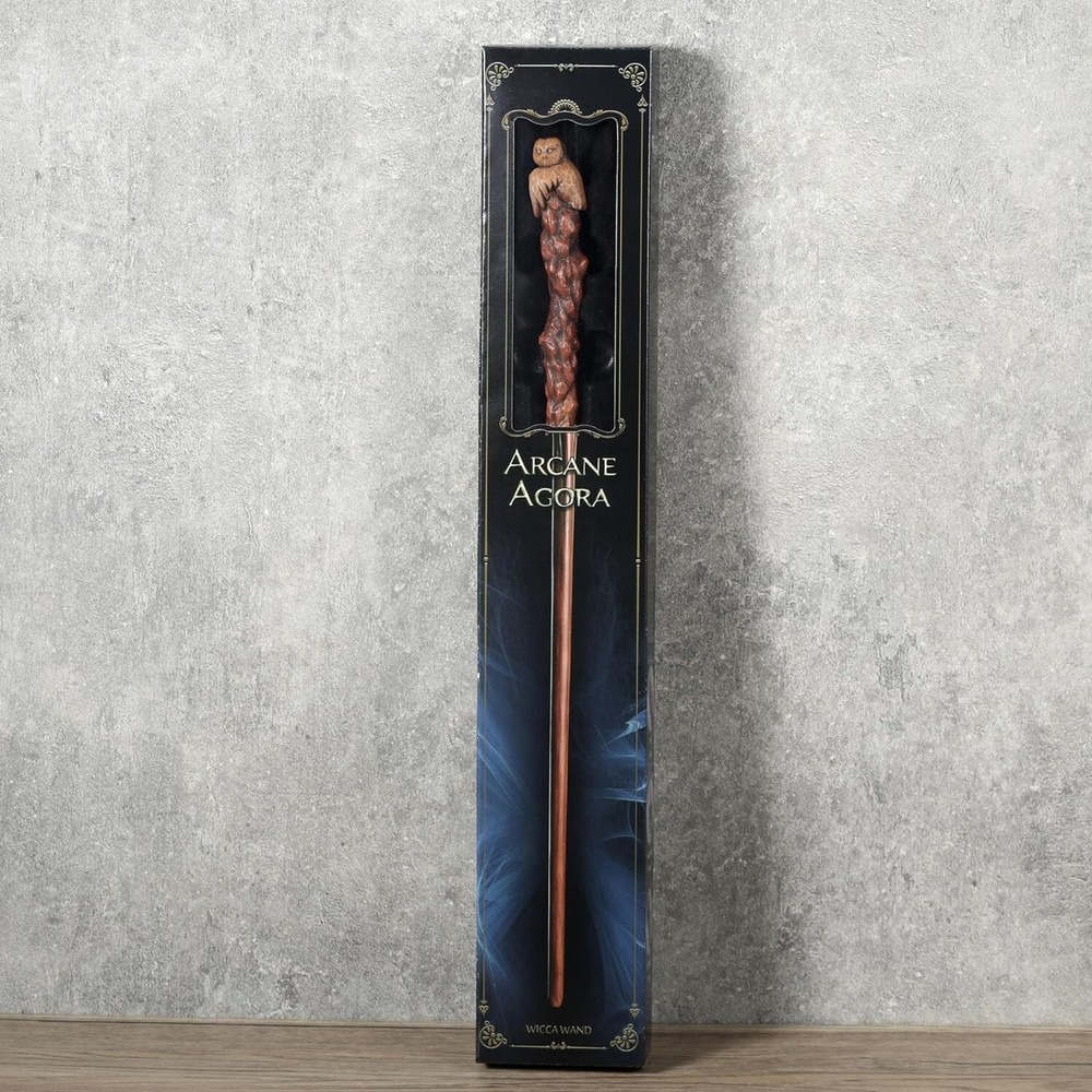 14 3/8 Inch Owl Magic Wand Resin Collectible Wizard Prop QUALITY PRODUCTION: Made with high quality resin and hand painted wooden finish by expert artisan MAGICAL COSPLAY: Whether for magical cosplay, theatrical performances or simply as a breath-taking display piece, the Owl Magic Wand casts a spell of absolute bewitchment, eliciting awe and admiration from all who encounter its exquisite craftsmanship. The magic awaits you, now it is up to you to be part of this enchanting experience. MEASUREMENT: L 1 * W 3/4 * H 14 3/8 Inches PACKAGING: Each Arcane Agoda wand is presented in sleek, premium, and secured packaging. GIFTING: Perfect gifting option for fans of the wizarding nature