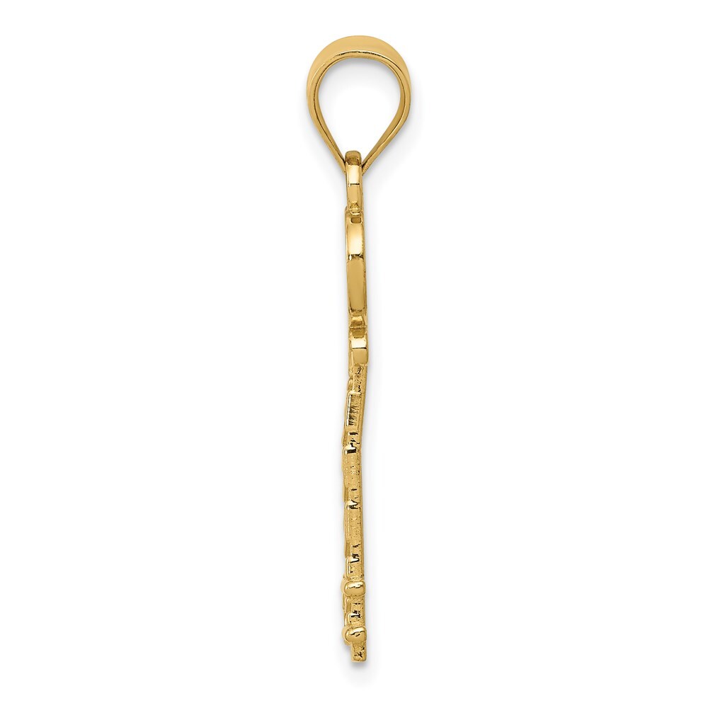 Material: Primary - Purity:14K|Length of Item:30 mm|Feature:Solid|Manufacturing Process:Casted|Material: Primary:Gold|Width of Item:9 mm|Product Type:Jewelry|Jewelry Type:Pendants & Charms|Sold By Unit:Each|Pendant/Charm Type:Themed|Material: Primary - Color:Yellow|Bail (Inside) Length:5.15|Bail (Inside) Width:4|Bail (Inside) Width U/M:mm|Bail (Inside) Length U/M:mm All weights and measurements are approximate and may vary slightly from the listed information. Welcome to diamond_6720 Payments We accept all Ebay approved payment. Please sent the payment to us within 8 days after the auction has ended, or you will have unpaid case auto open by eBay. Shipping Policy We will ship all items within 1 business days of purchase during the work week (M-F) excluding holidays. If you order on Friday, your order will be shipped the following business day. Tracking will be provided when it becomes available. We will only ship to a PayPal Verified Address. Please make sure your address is current and correct. If the information does not match, your order may be canceled. Buyers are responsible for all customs, duties and taxes for your respective countries. Delivery times for International Shipping will vary. California Buyers Pay 9.0% Tax on all orders. case auto open by eBay. Return Policy & Exchange Returns or Exchange are accepted. Buyer must contact us within 30 days after the item is received. Item must be returned in unworn and resalable condition. We will only issue a refund for the purchase price, excluding any shipping fees. If we are at fault, we will provide a full refund. Buyer is responsible for all return shipping costs. BUYERS FEEDBACK If you have any concerns regarding your purchase, please contact us via eBay Message, we assure you that a satisfactory resolution will be reached. Your feedback is very important to us Do remember to give us 5 star rating(*****) if you are satisfied with our product & service .