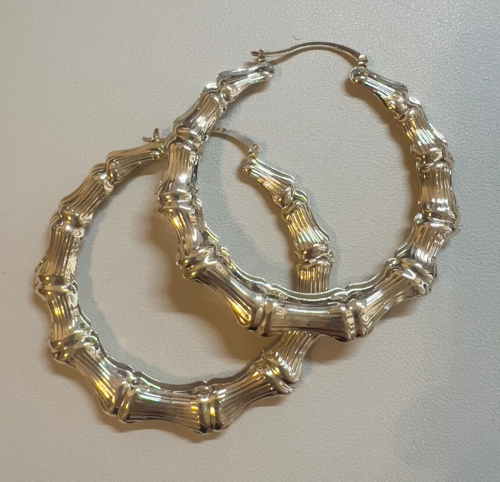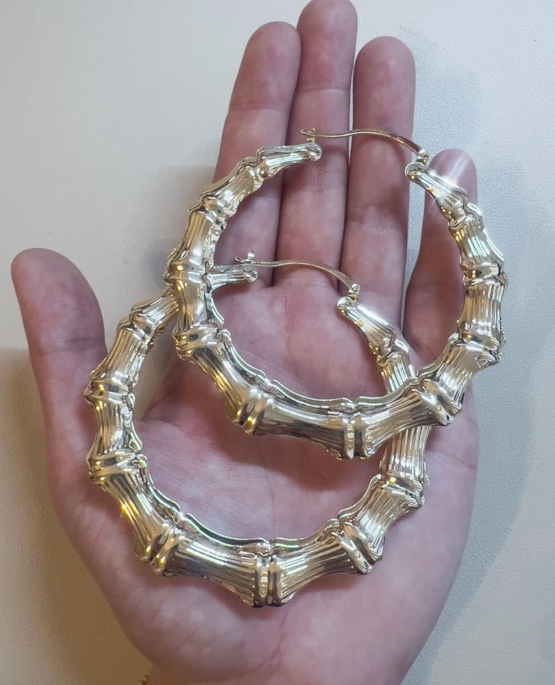 Elevate your style with these exquisite gold-filled bamboo hoop earrings. Inspired by the natural elegance of bamboo, these earrings feature a segmented design that adds a unique texture and dimension to any outfit. The reflective, shiny surface enhances their luxurious appearance, making them perfect for both everyday wear and special occasions. The medium-sized hoops are designed for comfort and durability, ensuring they stay in place all day with a secure clasp. Add a touch of sophistication and nature-inspired beauty to your jewelry collection with these stunning gold-filled bamboo hoop earrings. Features: Material: Gold-filled Design: Bamboo-like segmented texture Size: Medium Closure: Secure clasp Lightweight and comfortable Perfect for everyday wear or special occasions Dimensions: Diameter: Approximately 3.1 inches Width: Approximately 0.3 inches Why Choose Gold-Filled? Unlike gold-plated jewelry, gold-filled pieces are created with a thicker layer of gold, ensuring a longer-lasting finish that resists tarnish, flaking, and wear. With proper care, these earrings will maintain their beauty for years to come.