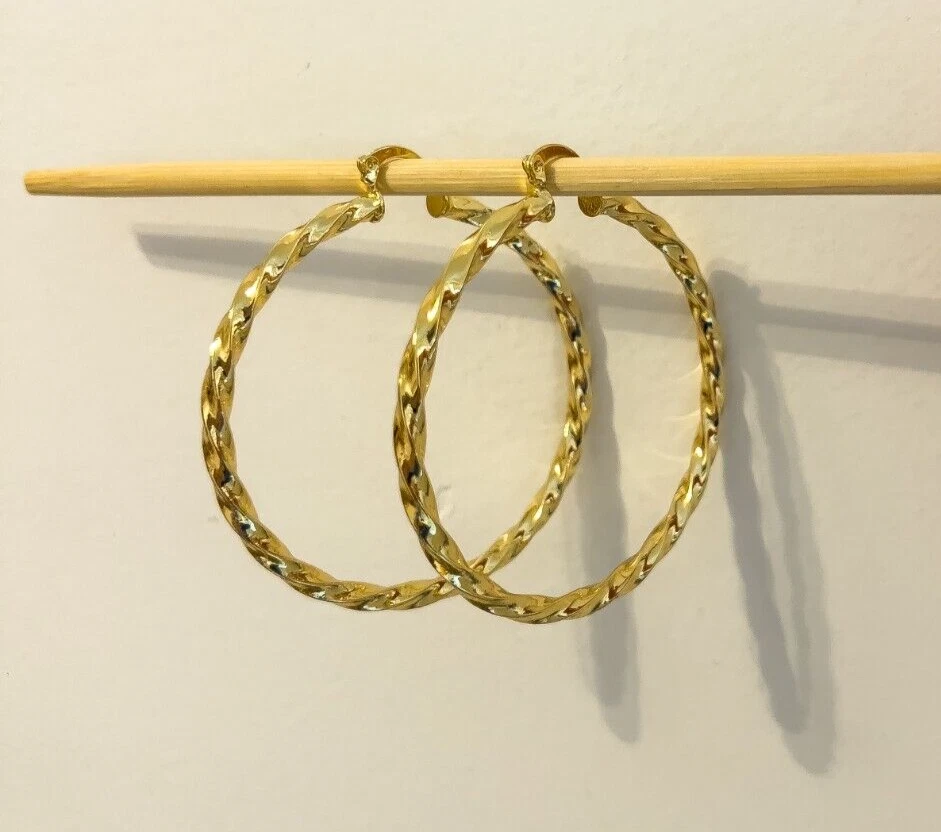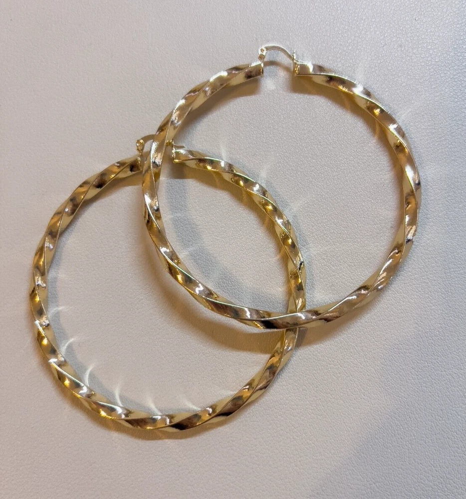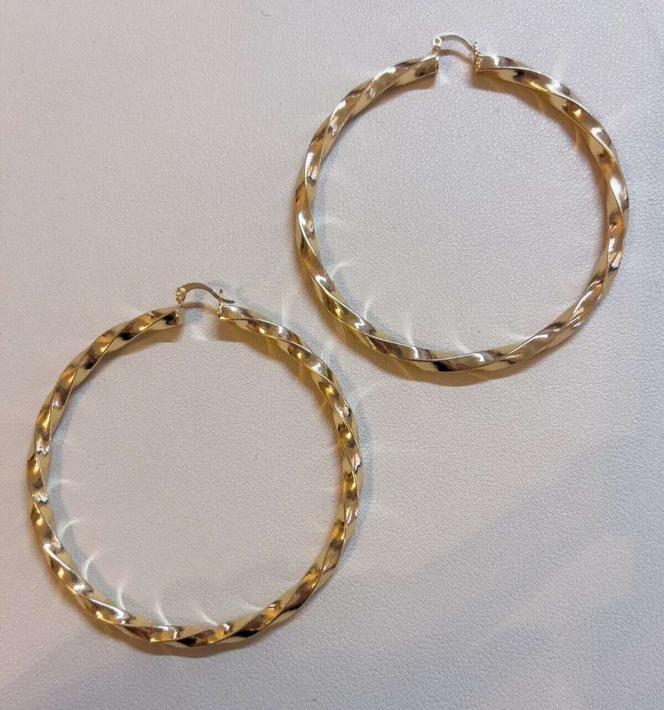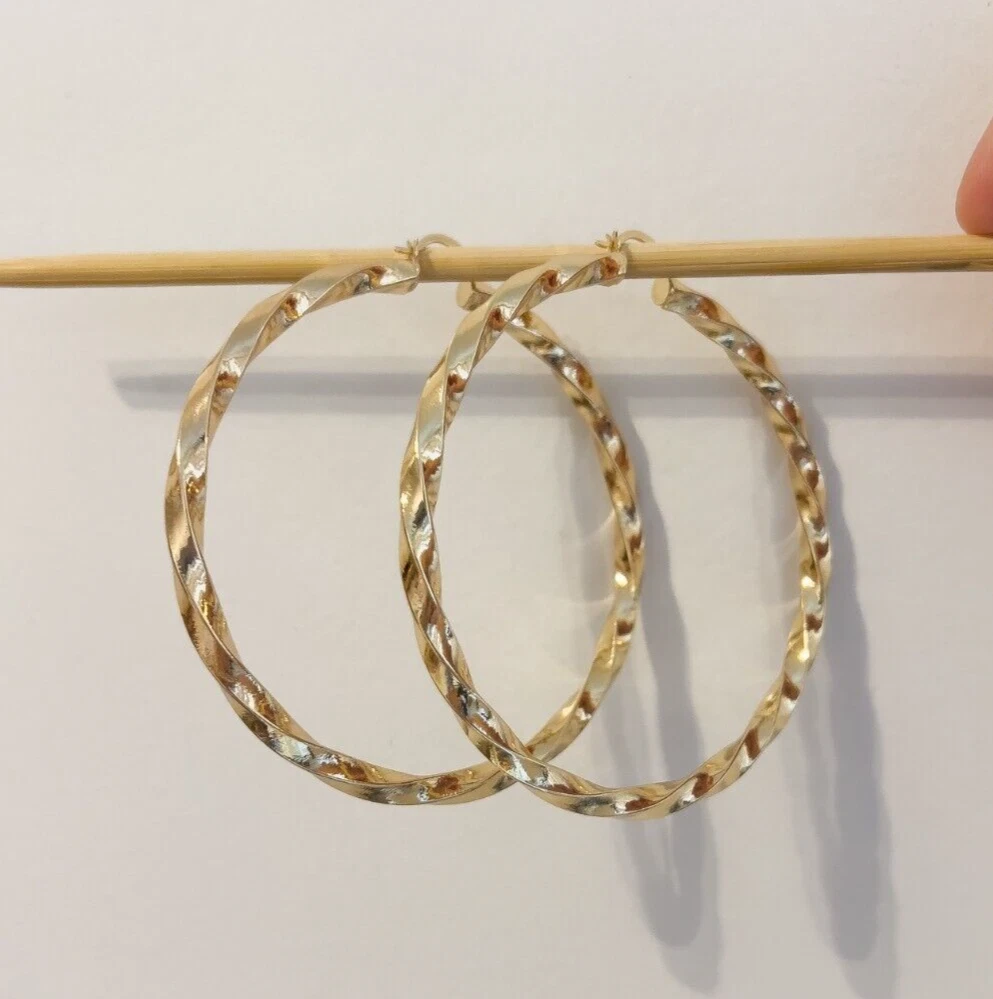 Elevate your style with these stunning gold-filled hoop earrings featuring a unique twisted design. Crafted with meticulous attention to detail, these earrings add texture and dimension to any outfit, ensuring you stand out effortlessly. The medium-sized hoops are perfect for both everyday wear and special occasions. The gold-filled material ensures durability and a long-lasting shine, giving you the luxurious look of gold without the hefty price tag. These earrings are lightweight and comfortable to wear, with a secure clasp that keeps them in place all day. Add a touch of elegance and sophistication to your jewelry collection with these exquisite gold-filled twisted hoop earrings. Features: Material: Gold-filled Design: Twisted texture Size: Medium Closure: Secure clasp Lightweight and comfortable Perfect for everyday wear or special occasions Dimensions: Diameter: Approximately 2.2, 3 inches Width: Approximately 0.1, 0.2 inches Why Choose Gold-Filled? Unlike gold-plated jewelry, gold-filled pieces are created with a thicker layer of gold, ensuring a longer-lasting finish that resists tarnish, flaking, and wear. With proper care, these earrings will maintain their beauty for years to come.