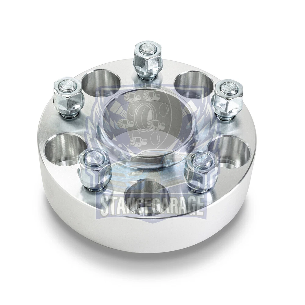 Spacer Width 38mm (1.5 inch) each side Quantity 2 Pieces Bolt Pattern5x115 (Hub) to 5x108 (Wheel) Center Bore 70.3mm to 63.4mm Thread Pitch 12x1.5 Spacer Type Hub Centric This adapter set includes open end lug nuts to secure the adapters onto your factory hubs Your Factory wheel studs may extend past the surface of the wheel adapters. In this case you will need to 1. Fine-Tuning Stud Length: Modify the existing factory studs to the appropriate size, if necessary, to ensure a perfect fit with the added accessories. 2. Inspection for Adequate Wheel Clearance: Prioritize checking that your wheels have the required intervals or voids between each bolt hole to facilitate spacer use. 3. Opting for Compact Stud Solutions: In cases where it’s beneficial, make the transition to a custom shorter stud set, designed to supplant the standard factory studs, enhancing overall compatibility.