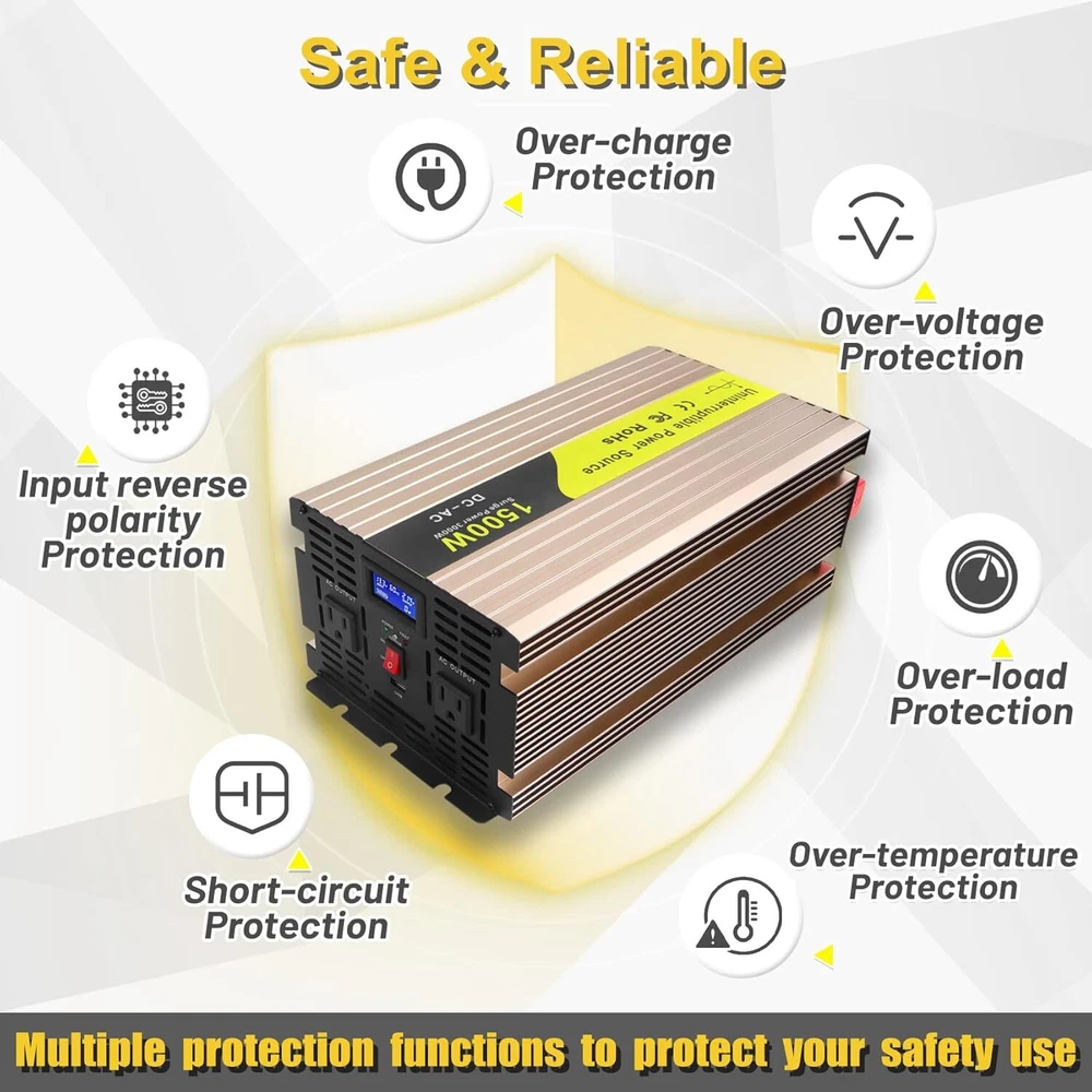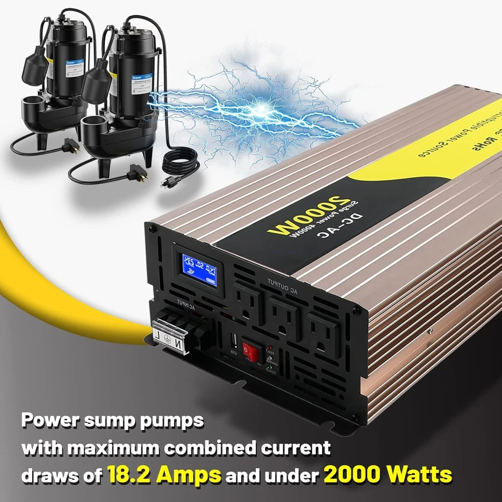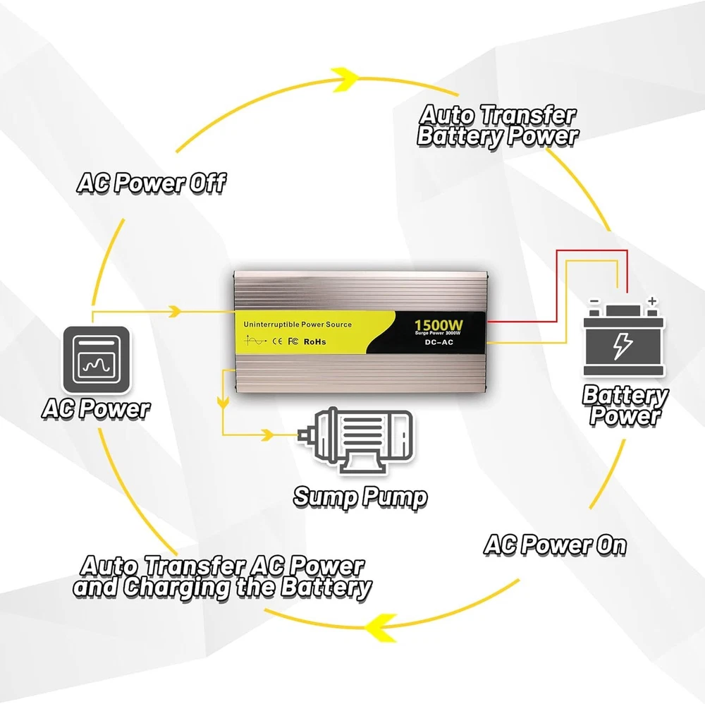 About this item Design for Basement Protection: Miumoon sump pump battery backup system are designed for basements to protect your home from flooding, When the power supply is normal, the pump is powered and charged automatically. When the power supply is cut off, it switches to battery power automatically, ensuring that your sump pump system operates smoothly and continuously. Whether it's a hurricane or heavy rain, the Miumoon sump pump battery backup system can keep your basement dry at all times. Excellent Performance: Miumoon sump pump battery backup system output power is up to 1500 Watt and output current can operate at a maximum current of 13.6 amps, it is easy to running both single and double pump systems, saving you valuable time and cost, Miumoon sump pump battery backup is ideal choice for handling basement sewage, and enjoy a clean, pollution-free environment with ease. Charging mode: 1500W sump pump battery backup system has a built-in 20A battery charger that supports fast charging for various battery types, trickle charging and the unit is suitable for deep-cycle batteries, AGM batteries is recommended and suitable for other deep-cycle battery types, but not for non-deep-cycle batteries. In addition, Miumoon sump pump battery backup have overcharge protection, your battery will not suffer any damage, which greatly extends your battery life. Safety Use: Miumoon sump pump battery backup has a LCD display on side, which allows you to clearly understand the battery and sump pump operating status. Additionally, It also has a built-in cooling system and overload protector, as well as multiple protection functions, including overheat, short circuit, low voltage, overcharge protection, etc., which not only improves the safety of use but also extends the equipment's lifespan. Easy to Install: Miumoon sump pump battery backup system requires no additional wiring, just assemble the AC and DC cable, it is a easy things. Multiple fixation modes, fixed hole on the side allow you flat placement or wall mounting. Miumoon sump pump battery backup system is your smart choice for easy and hassle-free installation