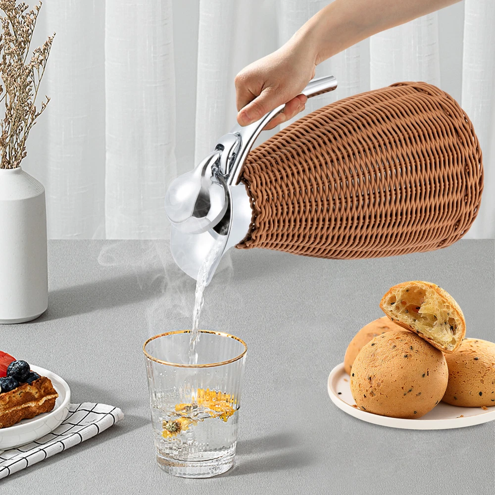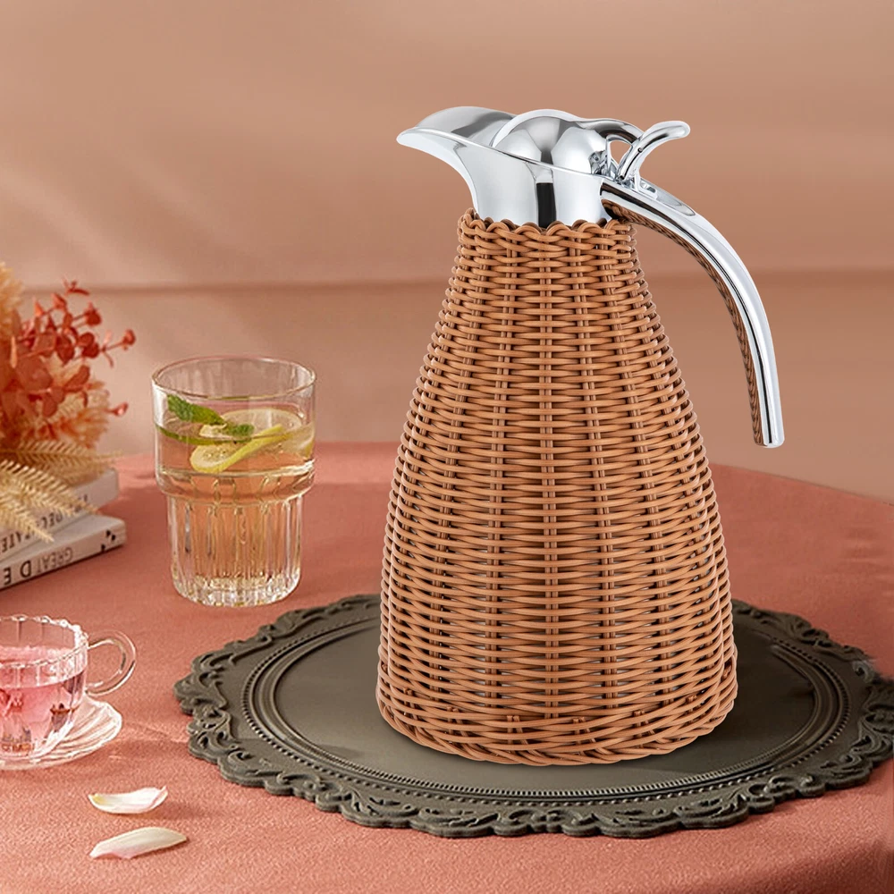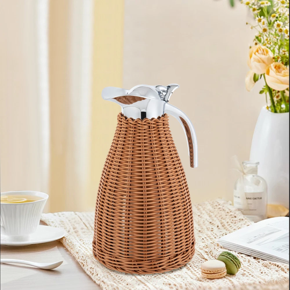 Specification Color: Coffee Shape: Round Style: Retro Is Dishwasher Safe: No Insulating Duration: About 24 Hours Material: 304 Stainless Steel, 201 Stainless Steel, PP, Silica Gel Process: Electroplating, Hand Woven Capacity: 1.5L/0.4 Gal Product Size: 16*16*25.5cm/6.3*6.3*10.04 in Package Size: 27*17*17cm/10.6*6.7*6.7 in Net Weight: 0.85kg/1.87lb Gross Weight: 0.9kg/2lb Package Included 1* Rattan Thermal Jug 1.5L Stainless Steel Round Coffee Thermal Jug Double Walled Vacuum Insualted Jug Description Description The rattan thermal jug is made from sturdy and durable materials, ensuring a long service life. Careful designs such as the one-push button, ergonomic handle, silica gel lid, and U-shaped spout make users’ experience better. Unique rattan hand kitting will add a touch of sophistication to your home and its lightweight makes it can be used in a variety of scenarios and outdoor activities. Anyway, you will get a multifunctional jug by choosing this product! Key Features Build to Last: Premium 304 stainless steel inner liner, 201 stainless steel shell, PP rattan, and exquisite electroplating process make this product safe, wear-resistant, corrosion-resistant , and not easy to rust, so it can withstand the test of time well. Excellent Insulation: The dual wall vacuum design allows the product to maintain high or low temperatures for approximately 24 hours, thereby better maintaining the flavor and freshness of the beverage(not included). Unique Design: The hand-woven interlocking vines can to some extent reduce burns, give the product a retro feel, enhance the sense of layering, and make it a beautiful scenery line for dining tables, coffee shops, and beverage shops. Large Capacity: The large capacity of 0.4 gallons meets the needs of multiple people, avoiding repeated additions and making it more convenient. Compact and Lightweight: A size of 6.3*6.3*10.04 inches, a weight of 1.87 lbs, and a convenient handle make it easy to store and carry anywhere. Effortless Cleaning: The rattan body, smooth handle, and spout make it easy to clean with water and a soft towel. Ideal Gift: With its large capacity and excellent insulation effect, this product is an ideal gift for family, friends, and loved ones who run a store. Quality Service: We stand behind all our guests and look forward to assisting you with your purchase. It is our pleasure to answer your confusion and questions. The end of the story between us is not “we sell and you buy”. Details Silicone Lid: It is high-temperature resistant, and corrosion-resistant , providing better hot or cold insulation and reducing water leakage One-hand Push-button: It allows you to easily pour out liquid with one hand, making it more convenient. U-shaped Spout: The wide spout makes the liquid pouring smooth and fluent and reduces splashing. Ergonomic Handle: The smooth, sturdy, and ergonomic handle ensures a comfortable grip while firmly picking up the jug. Application It is suitable for storing various cold and hot beverages such as tea, juice, coffee, and hot cocoa at home, restaurants, beverage shops, coffee shops, snack shops, offices, camping, outdoor dining, gatherings, hotels, gardens, university dormitories, apartments, etc. Specification Color: Coffee Shape: Round Style: Retro Is Dishwasher Safe: No Insulating Duration: About 24 Hours Material: 304 Stainless Steel, 201 Stainless Steel, PP, Silica Gel Process: Electroplating, Hand Woven Capacity: 1.5L/0.4 Gal Product Size: 16*16*25.5cm/6.3*6.3*10.04 in Package Size: 27*17*17cm/10.6*6.7*6.7 in Net Weight: 0.85kg/1.87lb Gross Weight: 0.9kg/2lb Package Included 1* Rattan Thermal Jug Notes For better results, please do not rinse or soak directly, do not use a dishwasher to clean the spout and handle, do not remove external vines to avoid improper reinstallation, and do not use cold and hot alternately to avoid safety hazards. Before use, please clean with warm water and then pour in hot water. The pure manual weaving process may cause problems such as uneven surface of the product, which is a normal phenomenon and does not affect its use. In order to extend the service life of the product, please do not expose it to sunlight or rain, nor do you leave it in a dark and humid place for a long time to avoid mold. If encountering moldy conditions, a soft brush can be used to brush away the mold spots, then wash and air dry it. Please note that coffee, milk, and other drinks are not included, and the holding time varies according to the external ambient temperature and the liquid capacity. Please allow the slight color difference caused by the shooting light and 1-3cm error due to manual measurement, and make sure you do not mind before ordering. Payment Delivery details Terms of sales About us Contact us Payment We accept ebay payment 。 Fees such as import duties, taxes are not included in the item price or shipping costs. These charges are the buyer's responsibility. Delivery details Shipping: 2-9 working days to: USA Terms of sales We maintain high standards of excellence and strive for hundred percent customer satisfaction. Feedback is very important to us. We hope that you contact us immediately before you give neutral or negative feedback, so that we can address your concerns. It is impossible to address issues if we do not know about them! About us Your satis faction is our ultimate goal. We work hard to earn your trust and future business. Our certified technicians have tested each item before shipping. The unit comes with 1 year limited warranty on all manufacturing defects. a) If you receive a defective item, you may return it or ask for a discount. Please contact us within 14 days after you receive the package. b) What you returned must be intact and in its original packaging as re? u. Customer is responsible for shipping costs of the returned item. c) We will cover the cost of shipping back t with the shipping rate indicated in the registration page. We will send you a new unit or r